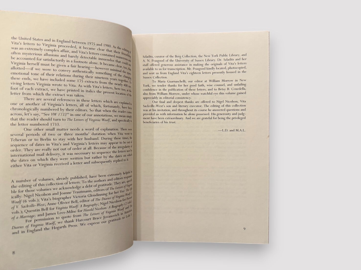 【SL970】【FIRST U.S EDITION】Letters of Vita Sackville-West to Virginia Woolf(1985) /Vita Sackville-West