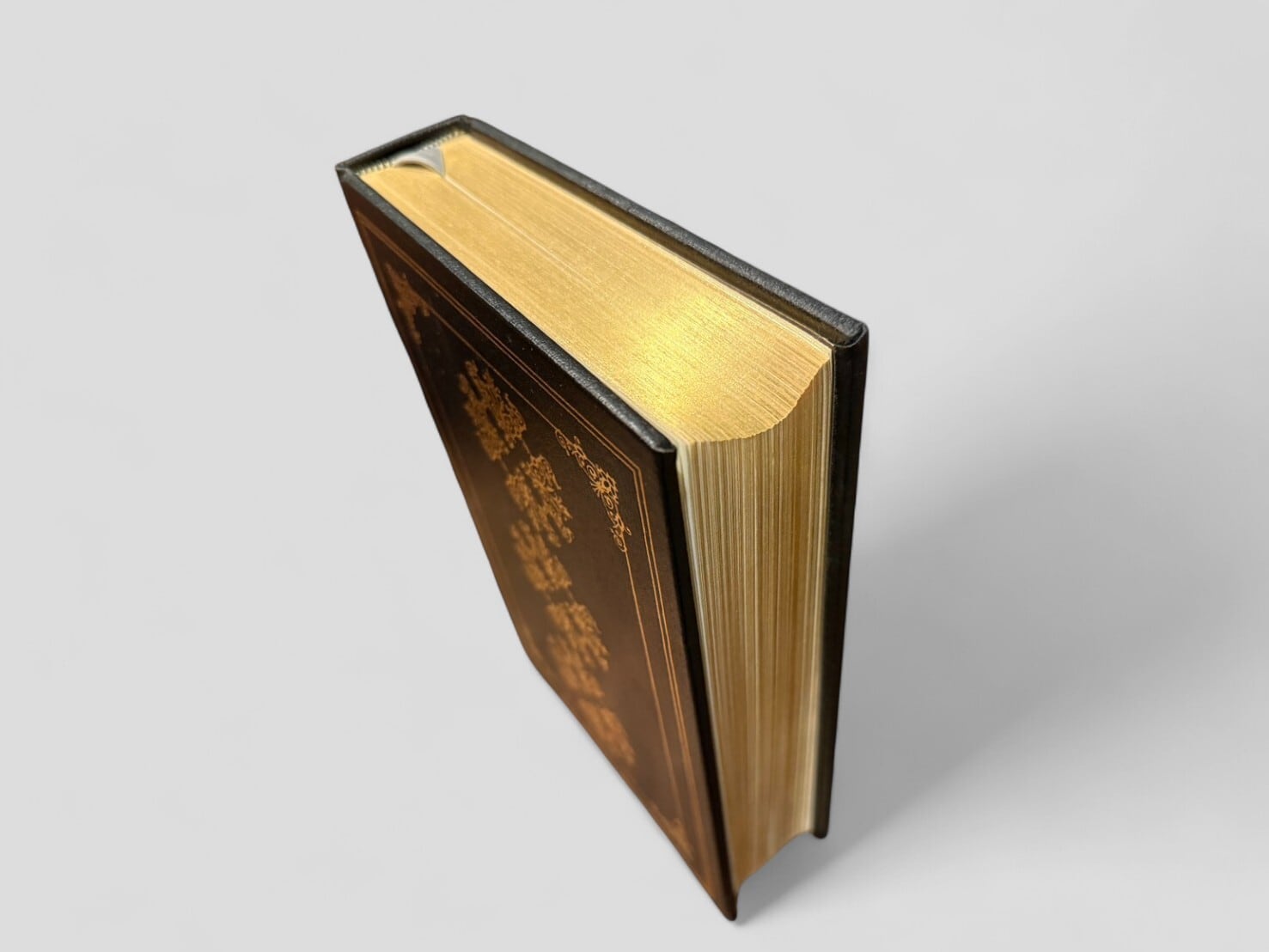 フランクリン・ライブラリーは、1964年にアメリカで設立された高級雑貨ブランド「フランクリン・ミント社」の一部門として誕生し、1970年代初頭から2000年まで、コレクター向けの革装丁本を制作していた。装丁には、オールレザー、イミテーションレザー、クォーターバインディングの3種類があり、素材には本革だけでなく高品質な紙も使用された。また、ページの綴じ方には糊付けではなく縫い付け製本を採用するなど、細部にまでこだわった高級書籍である。現在はフランクリン・ライブラリー部門が廃止されており、市場に流通している書籍はすべて貴重な絶版品となっている。