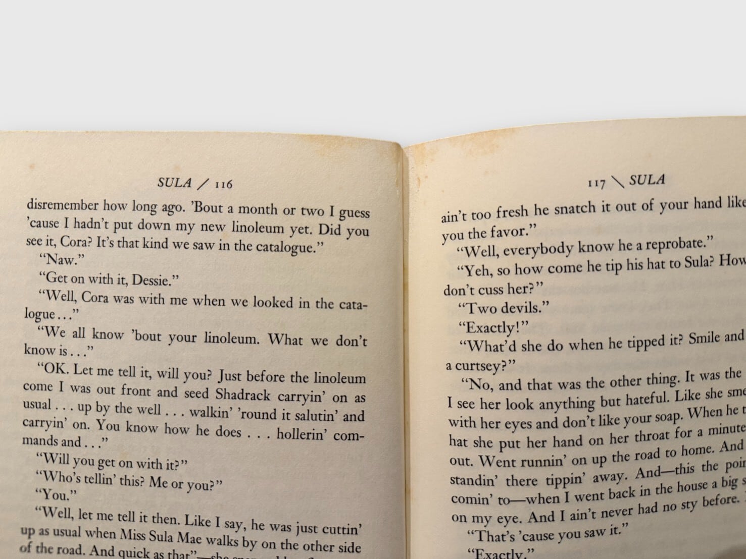 アメリカのノーベル賞作家トニ・モリスンによる、友情・誇り・孤独を描いた代表作『スーラ』。オハイオ州の小さな町メダリアンを舞台に、二人の黒人女性ネールとスーラの幼少期からの友情と対照的な生き方が描かれる。信仰と共同体、道徳と自由の間で揺れ動く彼女たちの姿は、アフリカ系女性文学の転換点とされ、モリスンの文学的声を決定づけた作品でもある。本書は1973年初版の翌年に刊行された第4刷で、Borzoi Bookシリーズ特有の温もりある装丁が魅力の一冊。