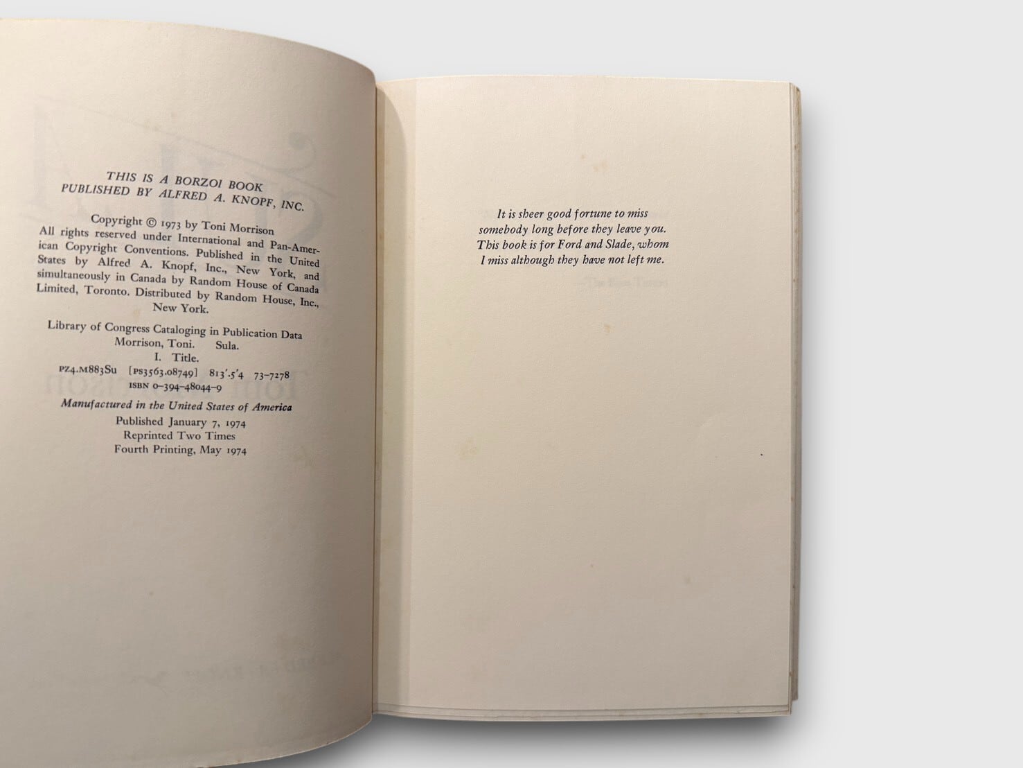 【SL975】【FIRST EDITION】【FOURTH PRINTING】Sula(1974) /Toni Morrison