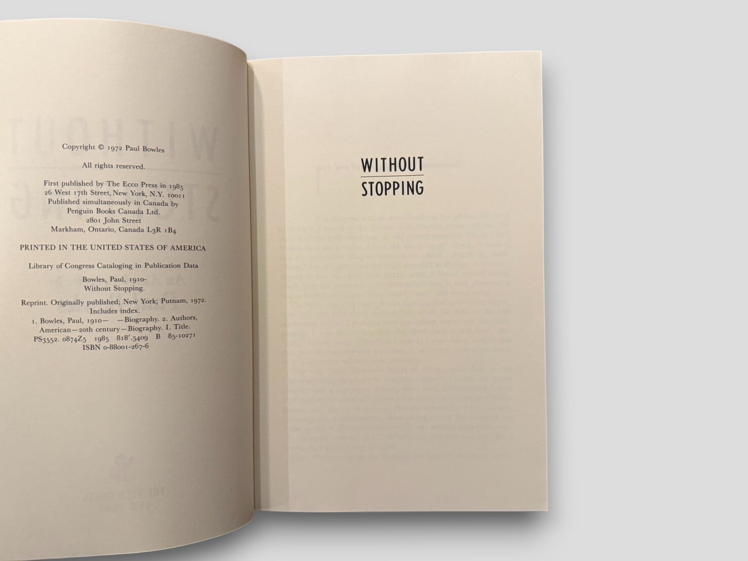 【SL977】Without Stopping: An Autobiography (1985) /Paul Bowles