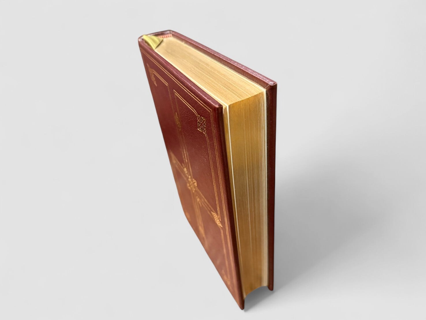 フランクリン・ライブラリーは、1964年にアメリカで設立された高級雑貨ブランド「フランクリン・ミント社」の一部門として誕生し、1970年代初頭から2000年まで、コレクター向けの革装丁本を制作していた。装丁には、オールレザー、イミテーションレザー、クォーターバインディングの3種類があり、素材には本革だけでなく高品質な紙も使用された。また、ページの綴じ方には糊付けではなく縫い付け製本を採用するなど、細部にまでこだわった高級書籍である。現在はフランクリン・ライブラリー部門が廃止されており、市場に流通している書籍はすべて貴重な絶版品となっている。
