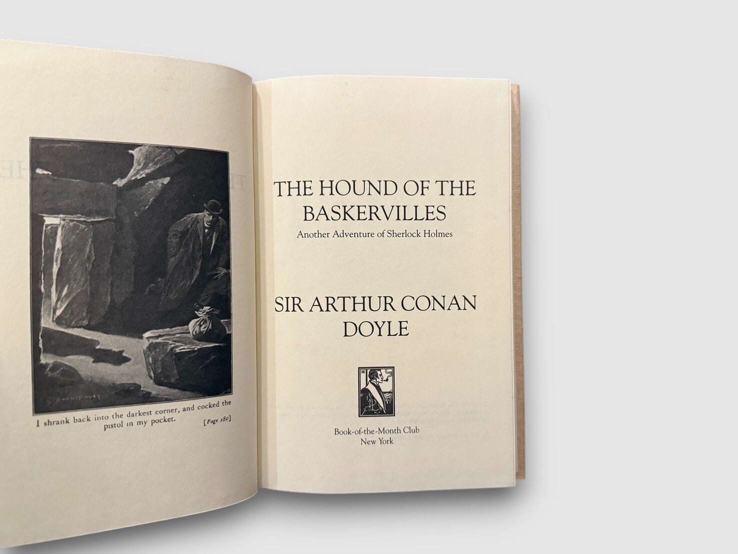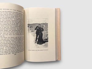 アーサー・コナン・ドイルによるシャーロック・ホームズ・シリーズ屈指の名作『バスカヴィル家の犬』。1902年に初版刊行された本作は、退屈していたホームズのもとに奇怪な遺産相続事件が舞い込むことで幕を開ける。霧深いダートムアの荒野を舞台に、理性と迷信、科学と恐怖がせめぎ合うサスペンスが展開される。本書は1994年にBook-of-the-Month Clubが刊行したクラブ会員向け特別版。ヴィクトリア朝探偵小説の世界観を美しく再現したハードカバー装幀が魅力的な1冊。
