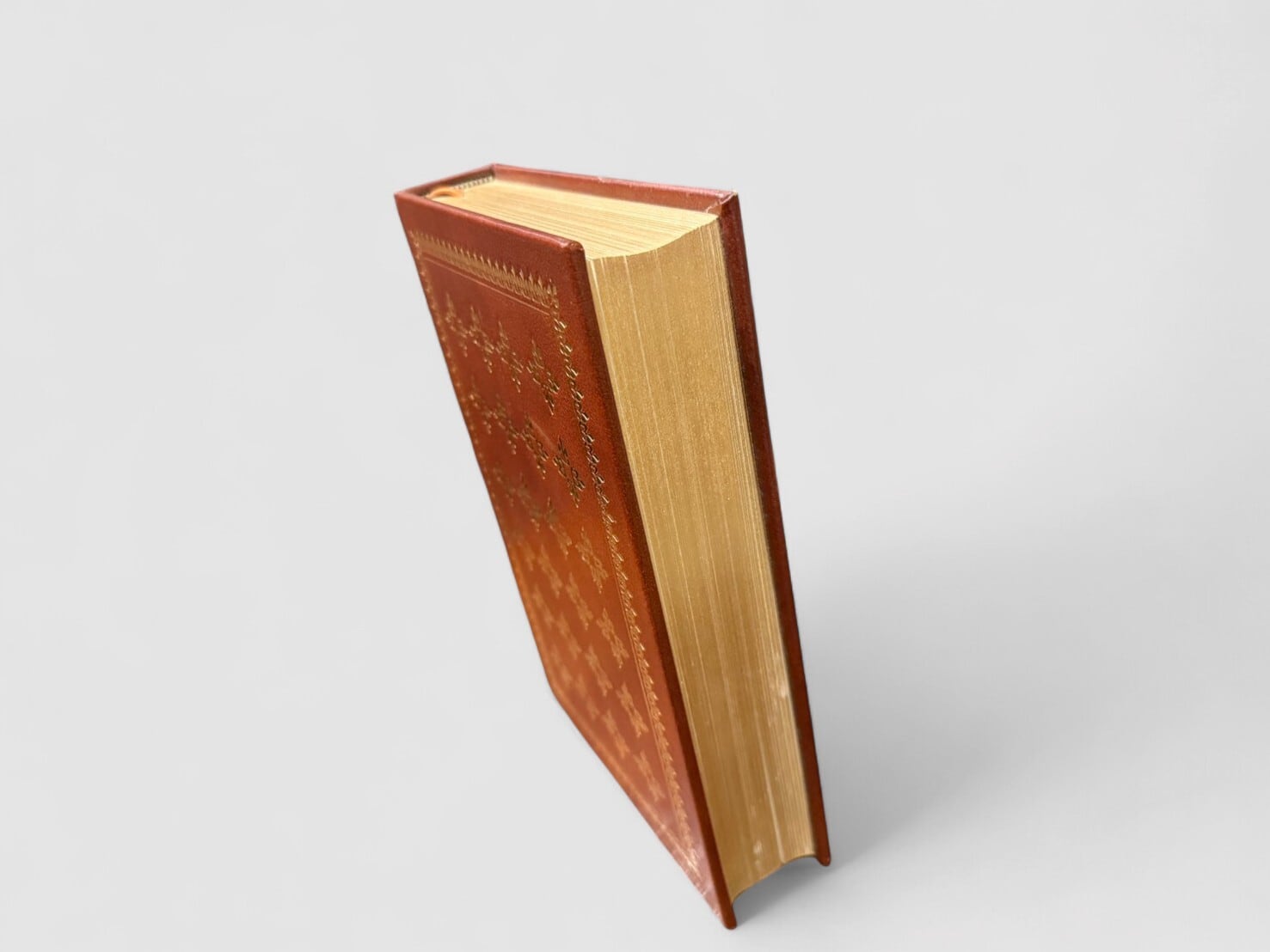 フランクリン・ライブラリーは、1964年にアメリカで設立された高級雑貨ブランド「フランクリン・ミント社」の一部門として誕生し、1970年代初頭から2000年まで、コレクター向けの革装丁本を制作していた。装丁には、オールレザー、イミテーションレザー、クォーターバインディングの3種類があり、素材には本革だけでなく高品質な紙も使用された。また、ページの綴じ方には糊付けではなく縫い付け製本を採用するなど、細部にまでこだわった高級書籍である。現在はフランクリン・ライブラリー部門が廃止されており、市場に流通している書籍はすべて貴重な絶版品となっている。