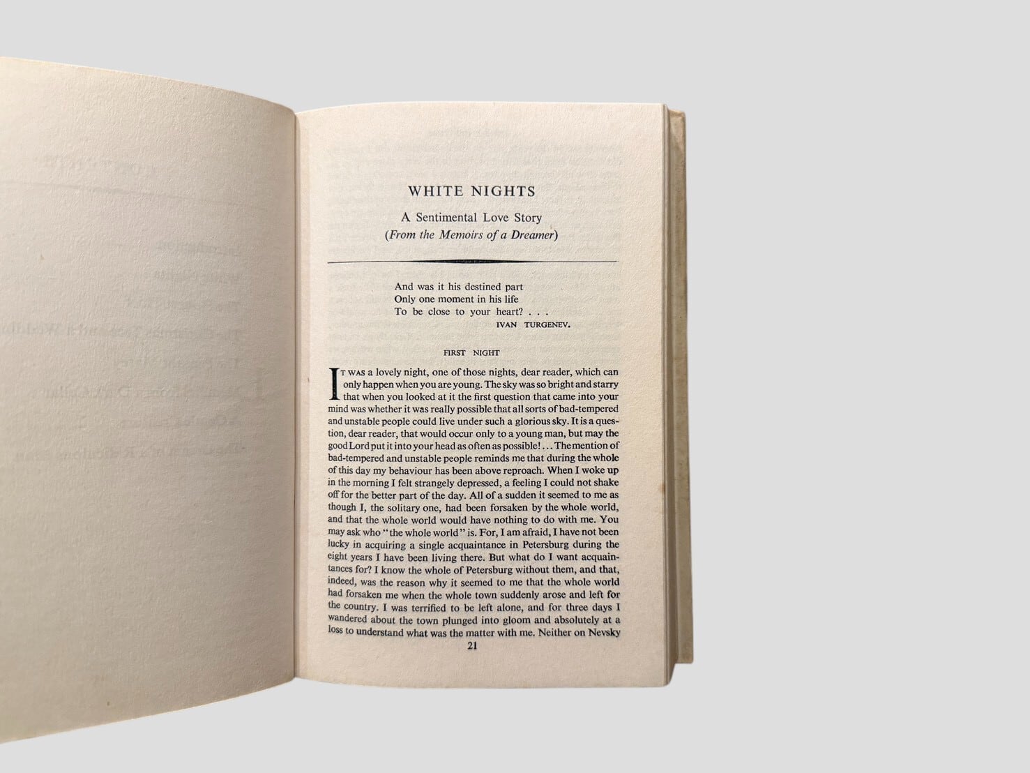 ドストエフスキーの珠玉の短編集。収録作は「White Nights(白夜)」「The Honest Thief(正直者の泥棒)」「The Christmas Tree and a Wedding(クリスマス・ツリーと結婚式)」「The Peasant Marey(農夫マレイ)」「Memoirs from a Dark Cellar(地下室の回想)」「A Gentle Creature(おとなしい女)」「The Dream of a Ridiculous Man(笑われた男の夢)」の7編。ドストエフスキーが人間の孤独・信仰・愛を描き出した傑作群であり、長編では見えにくい作家の繊細な精神の側面を垣間見ることができる。The Chiltern Libraryシリーズらしい英国的上品さを備えた一冊である。