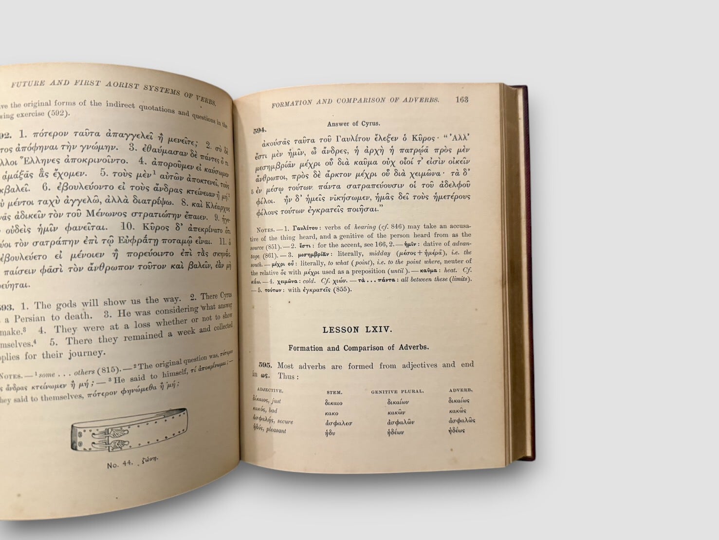 アメリカの古典学者ジョン・ウィリアムズ・ホワイトによるギリシャ語入門書。本書は1892年の『Beginner’s Greek Book』に続く改訂版として執筆され、より短期間で体系的に文法・語彙・構文を学べるよう構成されている。1896年刊行初版。古典語教育の黄金期を象徴する学術書の一冊。