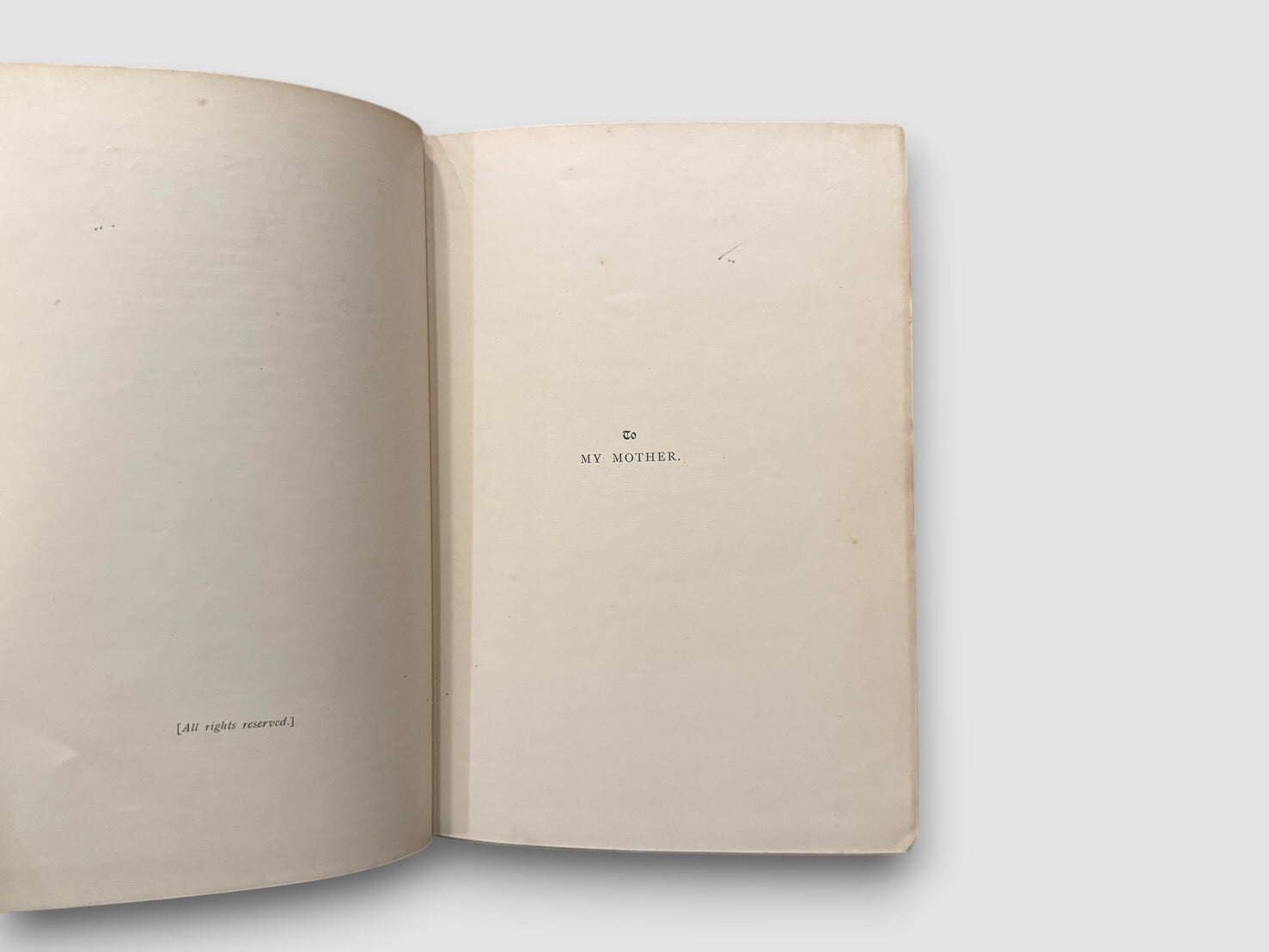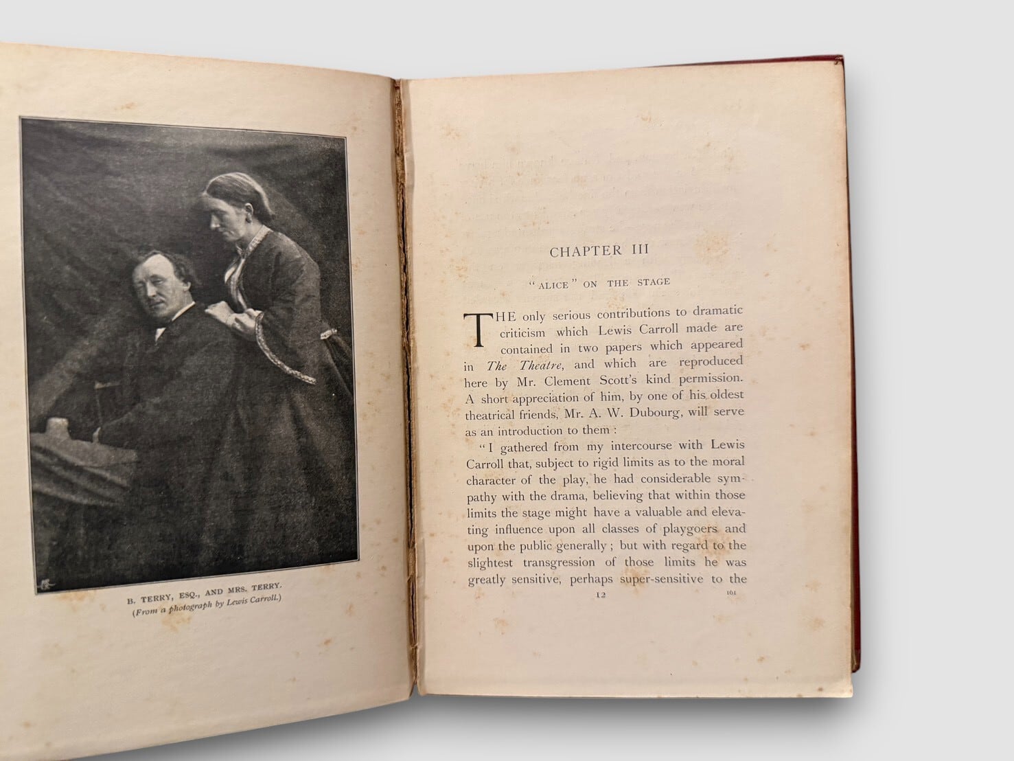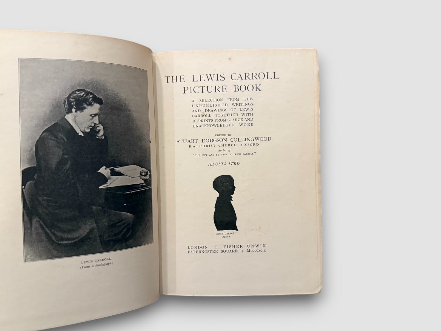 『不思議の国のアリス』の作者ルイス・キャロルの未発表原稿、詩、書簡、スケッチ、そして自身が撮影した写真をまとめた貴重な資料集。編集を手がけたのは甥のスチュアート・ドジソン・コリングウッドで、キャロル研究の中心人物として知られる。本書には、キャロルが親しく交流した人物たちの肖像を含む挿絵や写真が多数収録され、彼の文学的・芸術的世界を視覚的に辿ることができる。赤布装に金箔押しのグリフィンとマーチヘアを配した美装版で、19世紀末の英国出版文化を象徴する一冊。1899年刊行初版。
