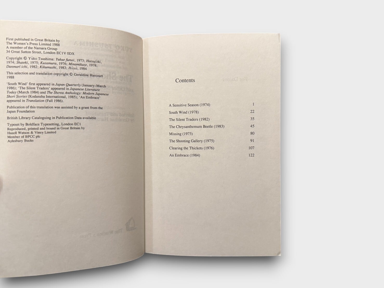 現代日本文学を代表する作家・津島佑子による短編集『射的場』を含む、1970〜80年代に発表された代表的短編集全8編を収録した英訳版。翻訳・編纂はGeraldine Harcourtが手掛け、女性の孤独・母性・喪失をめぐる繊細な心理を、静謐かつ鋭い英語表現で描き出している。本書は1988年にロンドンのThe Women’s Pressから刊行され、日本女性作家の声を紹介する翻訳文学の先駆的シリーズの一冊として位置づけられる。津島文学の核心にある“喪の静けさ”と“再生の気配”を、英語で味わえる貴重な一冊。