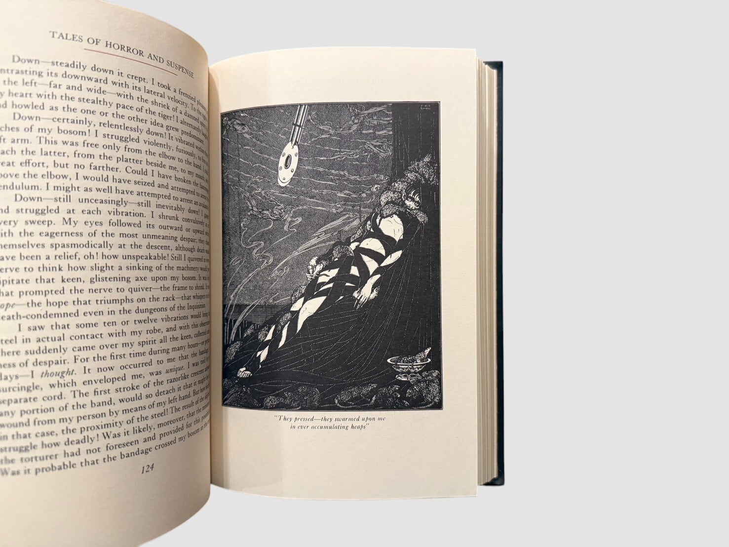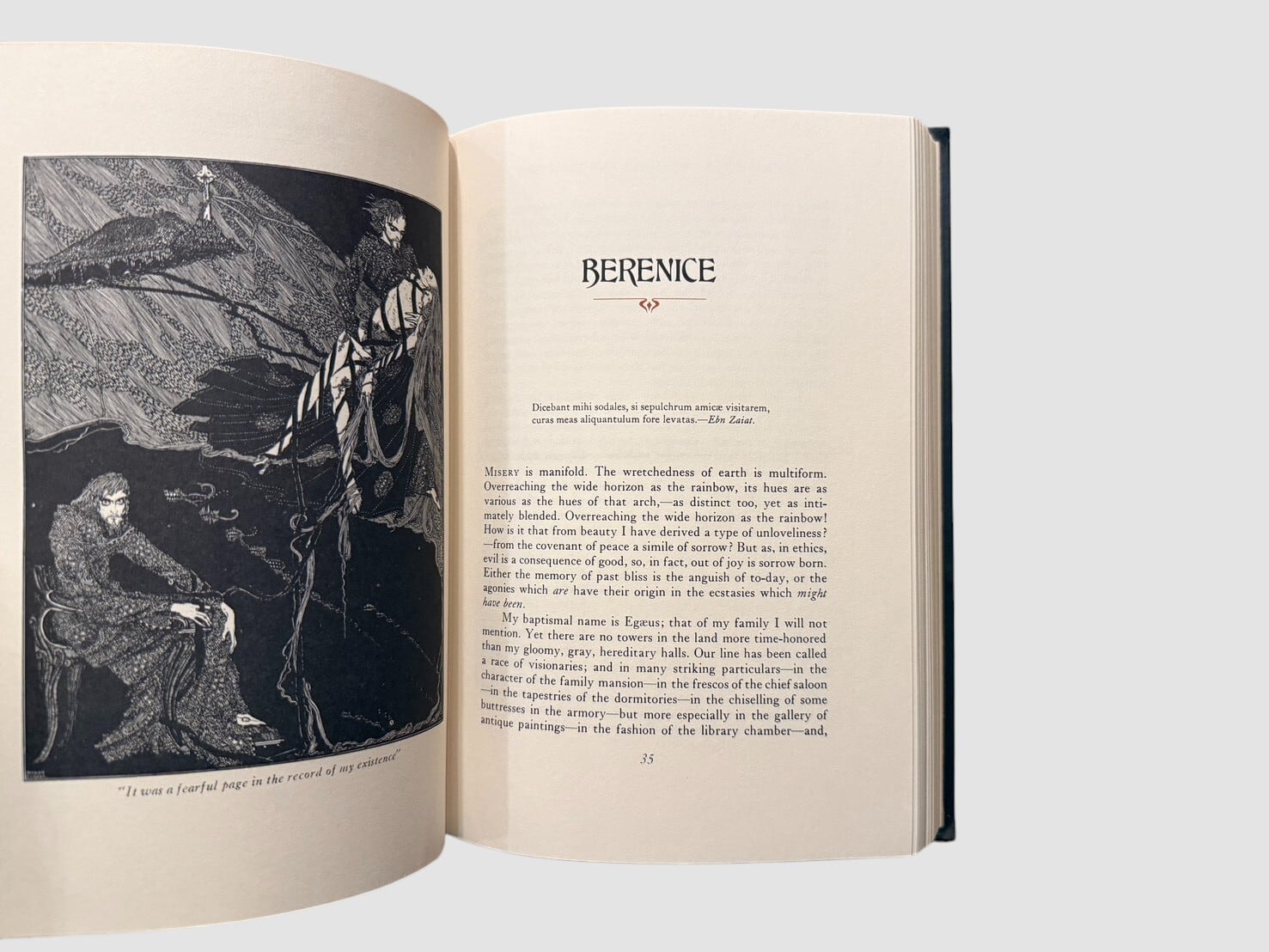 死、狂気、幻想、そして理性の崩壊——ポーの物語世界は、光と闇、現実と夢のあわいで人間心理の極限を照らす。「黒猫」「アッシャー家の崩壊」など、後の推理・怪奇文学の原型となる名篇を多数収録。本書は、オックスフォード大学出版局監修による〈The Oxford Library of the World’s Great Books〉シリーズの一冊として、The Franklin Libraryより刊行された特装版。挿絵は幻想画家ハリー・クラーク(Harry Clarke)による1919年版『Tales of Mystery and Imagination』の図版を再録。文学と美術が融け合う、コレクター必携の一冊。