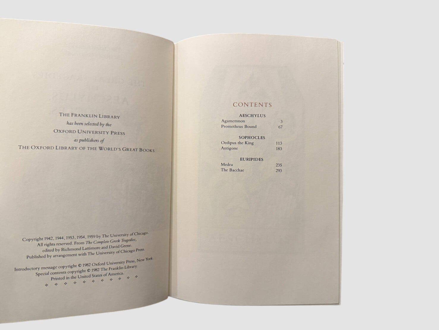 【SLF056】【THE FRANKLIN LIBRARY × OXFORD UNIVERSITY PRESS EDITION】The Great Tragedies of Aeschylus, Sophocles, and Euripides (1982) /Aeschylus, Sophocles, and Euripides