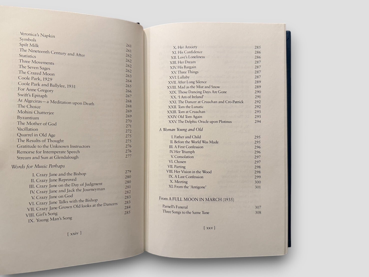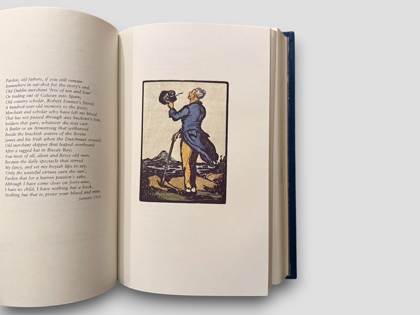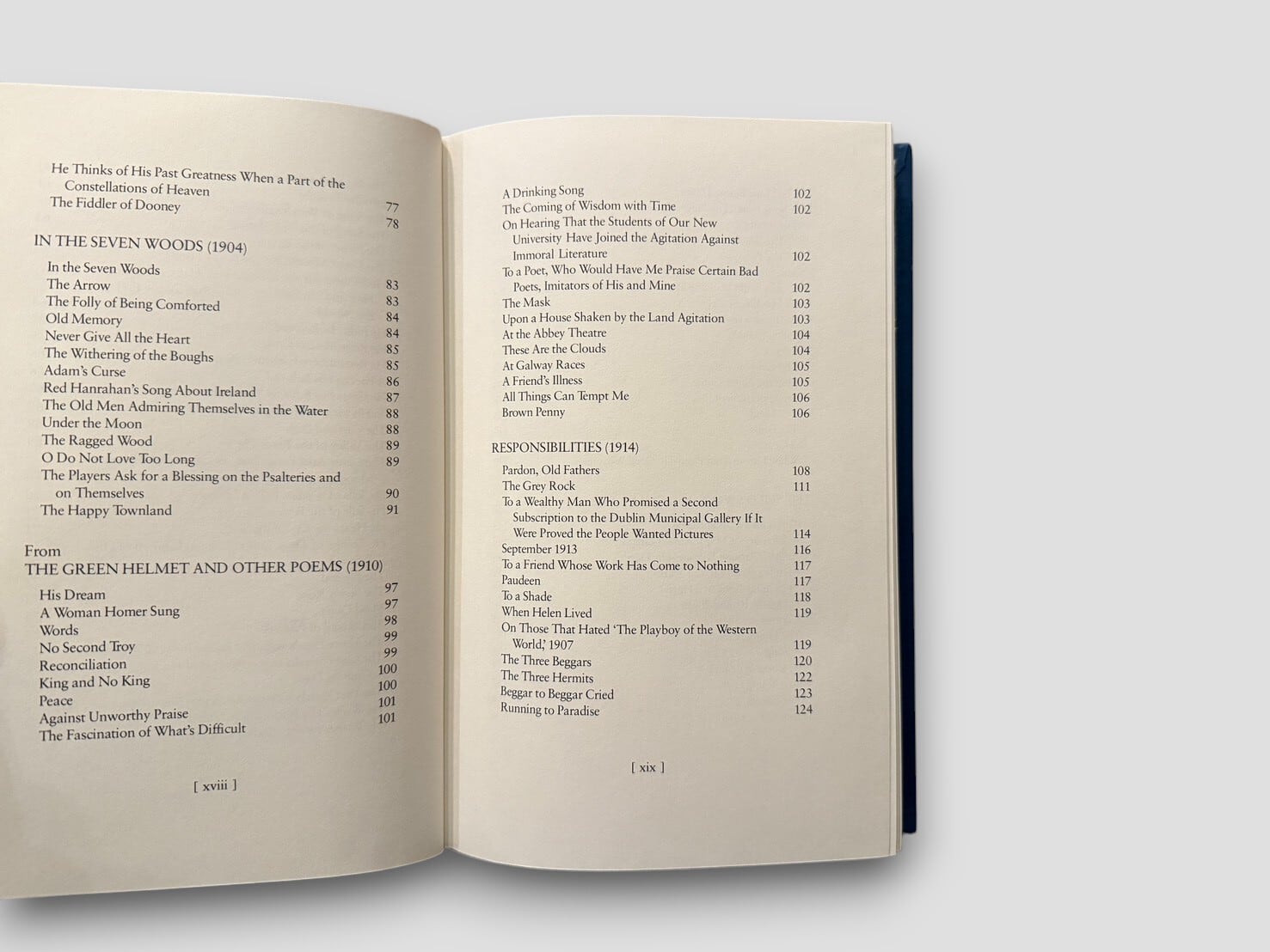 ケルト神話やアイルランドの伝承、魂の変容を主題とした象徴的な詩から、晩年の哲学的で静謐な詩篇までを網羅し、作者自身の最終改訂を経た「Definitive Edition」に基づく集大成である。本書は、オックスフォード大学出版局とフランクリン・ライブラリーの共同刊行による The Oxford Library of the World’s Great Books シリーズの一冊で、詩人の実弟であり画家としても知られるジャック・B・イェイツの挿絵を収録している。深い青の革背と金箔装飾が美しい装丁で、詩の神秘的世界を静かに包み込む一冊。