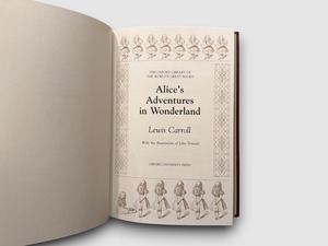 オックスフォードの数学者チャールズ・ラトウィッジ・ドジソンが “ルイス・キャロル” の筆名で発表した本作は、夢と論理、詩とユーモアが交錯する無限の迷宮世界を描き出す。1865年に刊行されて以来、その奇想と言葉遊びの魅力は時代を超えて愛され続けている。本書は The Franklin Library が Oxford University Press と提携し、“The Oxford Library of the World’s Great Books” シリーズとして刊行した1981年版。1866年にアメリカの D. Appleton and Company から刊行された初版シート(原本の初刷頁を含む)に基づいて再現されている。