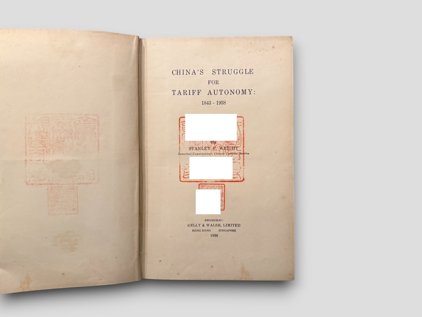 【SAA207】【FIRST EDITION】China's Struggle for Tariff Autonomy: 1843-1938(1938) /Stanley F. Wright
