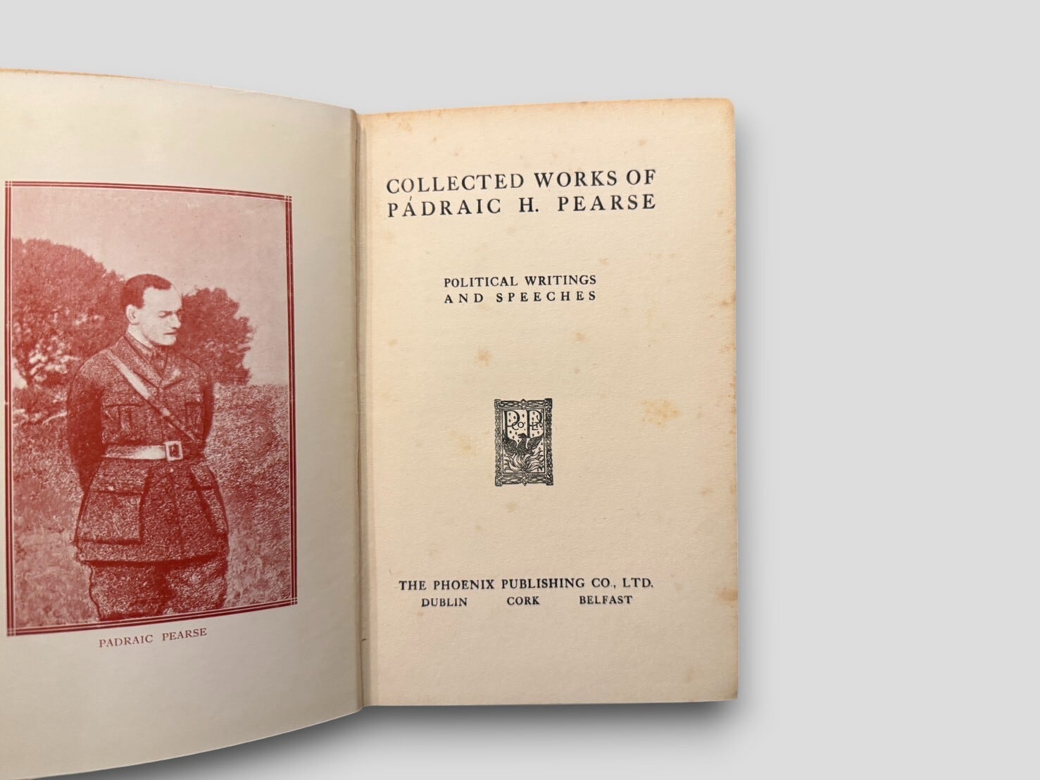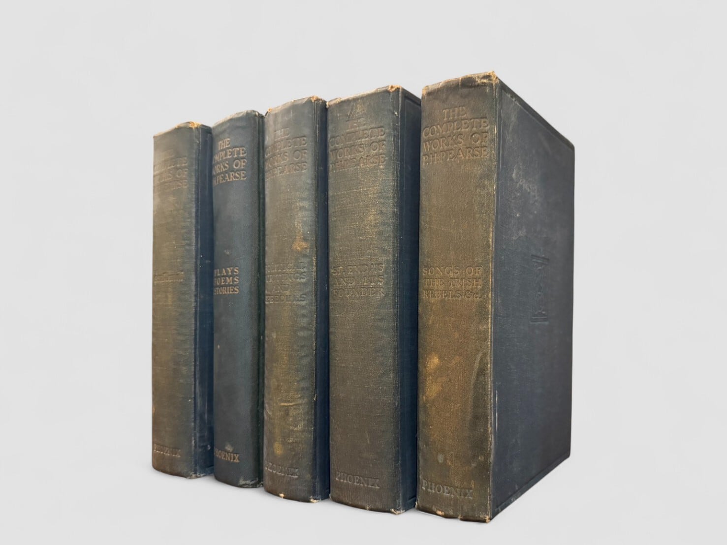 アイルランド独立運動の象徴的人物 Pádraic H. Pearse(1879–1916) の著作を集成した 全5巻揃いの重要なコレクション。各巻は独立したタイトル構成を持ち、Pearse の文学・政治思想・教育論・演説・詩篇を包括的に収録する。文学・歴史・政治思想の三領域が交わる希少なセットであり、アイルランド独立と文化復興運動を知るうえで欠かせない資料的価値を持つ。