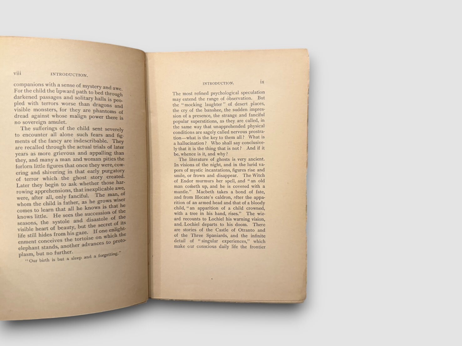 19世紀末の ヨーロッパ各国 の文学から選ばれた怪奇譚を集めた、希少な幽霊物語アンソロジー。モーパッサン、ベッケル、キエランなど、大陸の作家たちの“異なる文化圏の怪異”が一冊にまとまっている。巻頭には、随筆家ジョージ・ウィリアム・カーティスによる長い序文が収められ、「なぜ人は幽霊譚に惹かれるのか」という心理、文化的背景、迷信と理性のゆらぎなどを辿りながら、怪奇文学の魅力を静かに照らし出している。1890年刊行初版。