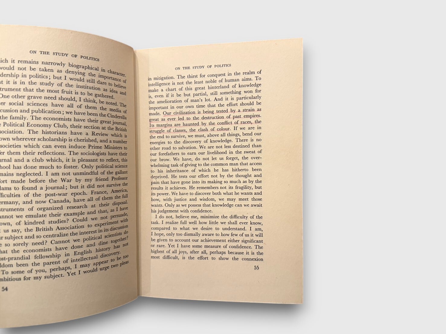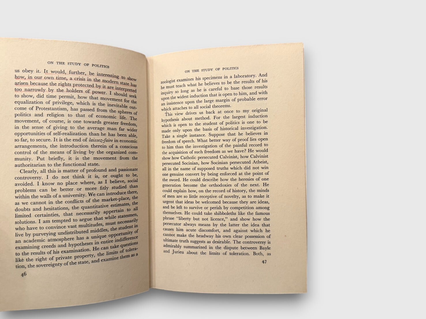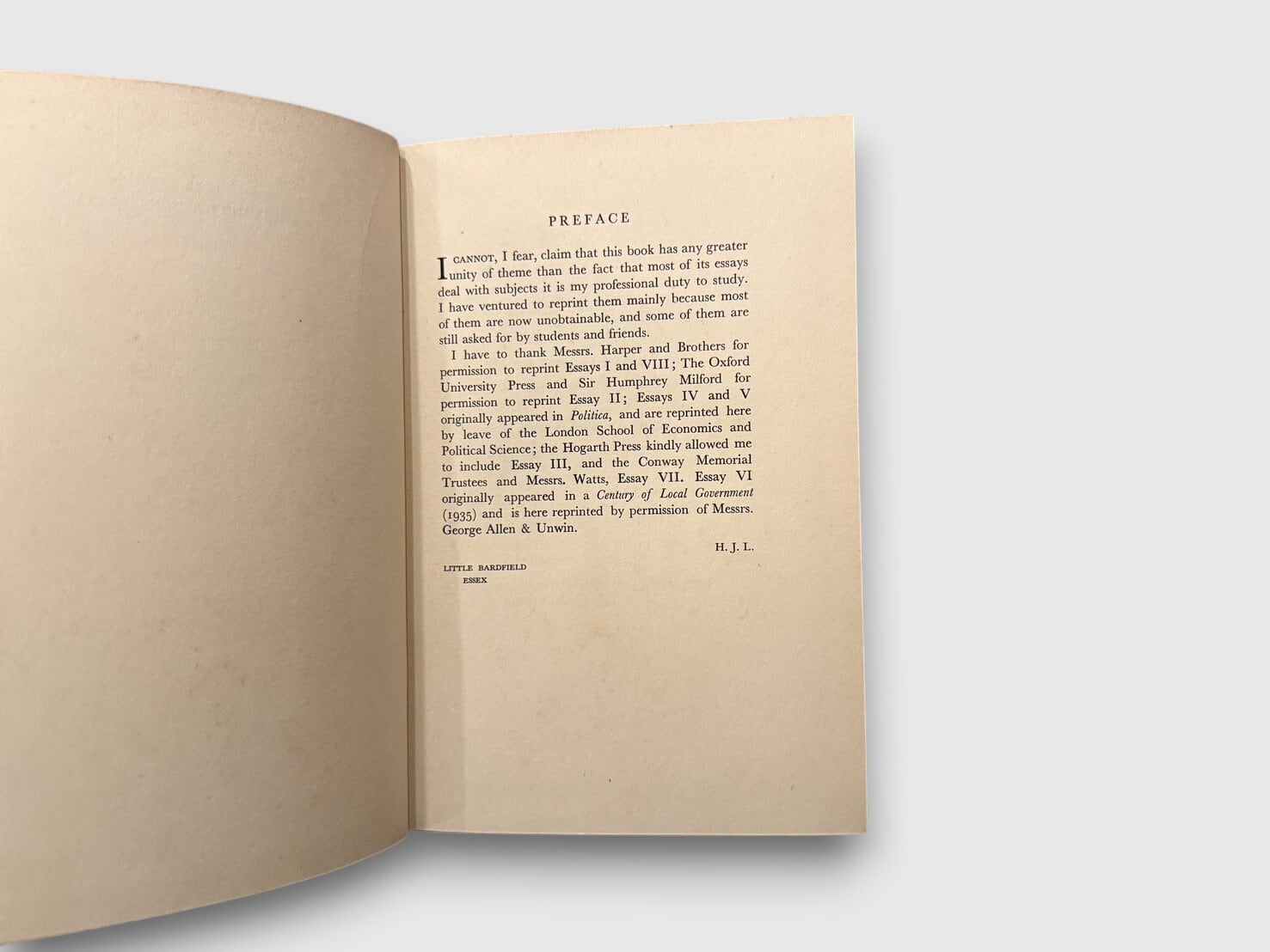 20世紀イギリスを代表する政治思想家、ハロルド・J・ラッスキによる随筆集。タイトルエッセイ「The Danger of Being a Gentleman」(1932年)をはじめ、政治研究、憲法問題、司法制度、ソビエト法、地方行政、ナショナリズムなど、1930年代のヨーロッパとアメリカをめぐる緊張と変動を鋭く切り取った論考が収録されている。収録エッセイには、雑誌『Politica』『Century』『Local Government Chronicle』などに発表された論文が多く含まれ、序文(Preface)でもラッスキ自身が述べているように「現在では入手困難となった雑誌論文を、学生からの要望に応えて再録した」という編集意図が反映されている。政治思想史・ラッスキ研究の資料としても魅力のある一冊。