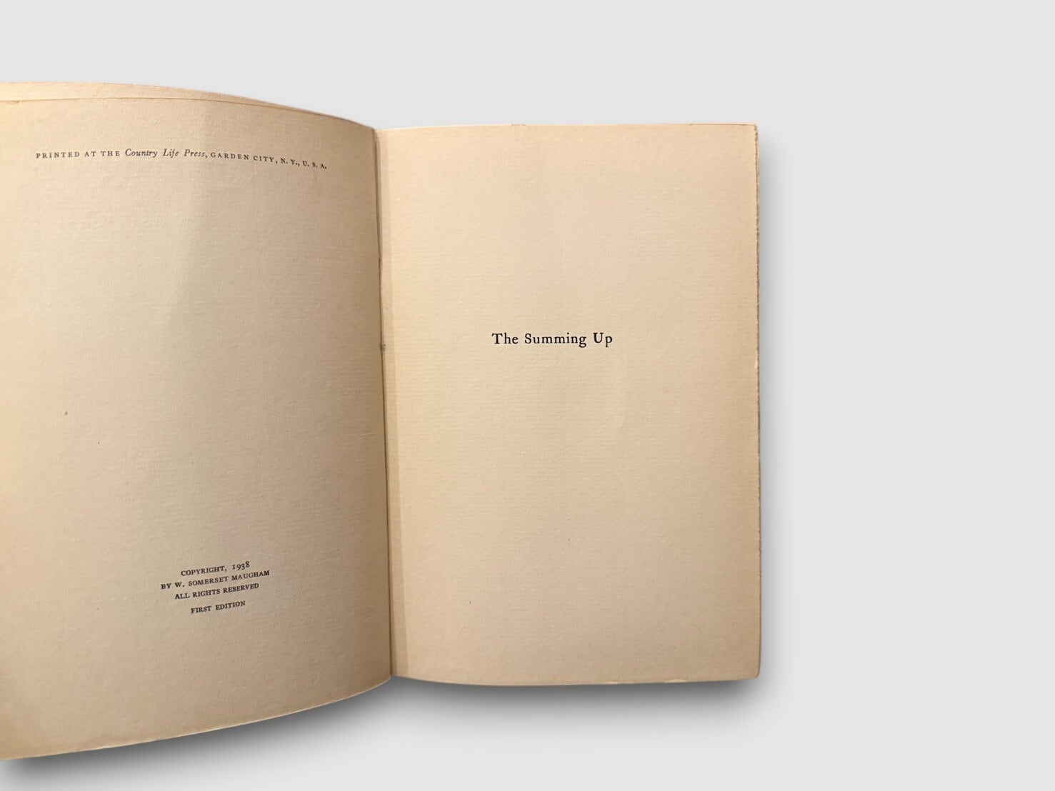 【SL1024】【FIRST U.S EDITION】The Summing Up(1938) /W. Somerset Maugham