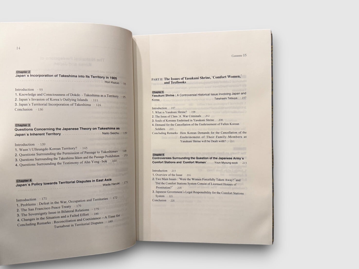 韓国と日本の間に長く横たわる歴史認識の諸問題、独島/竹島問題、靖国神社、慰安婦、教科書記述などを、多角的かつ学術的な視点から検証する論文集。Hyun Dae-song を編集者に迎え、歴史学・国際法・外交史の専門家たちが寄稿し、それぞれの争点の「起源」「資料」「論点の構造」を一次史料と研究成果に基づいて分析している。2008年刊行初版。