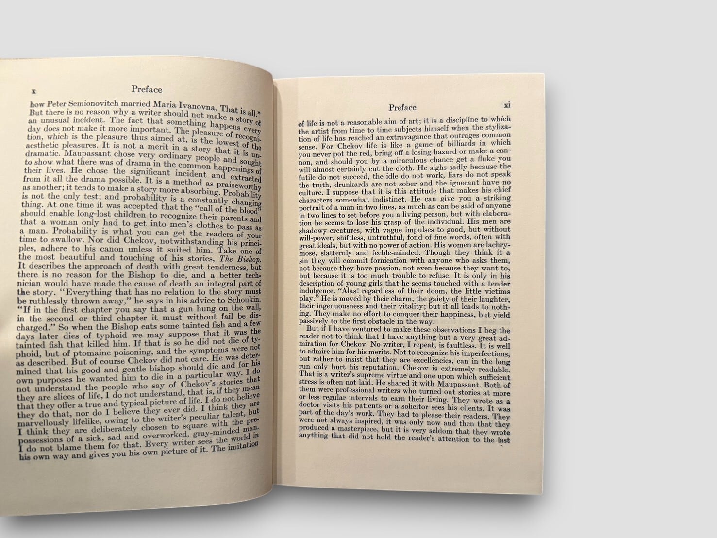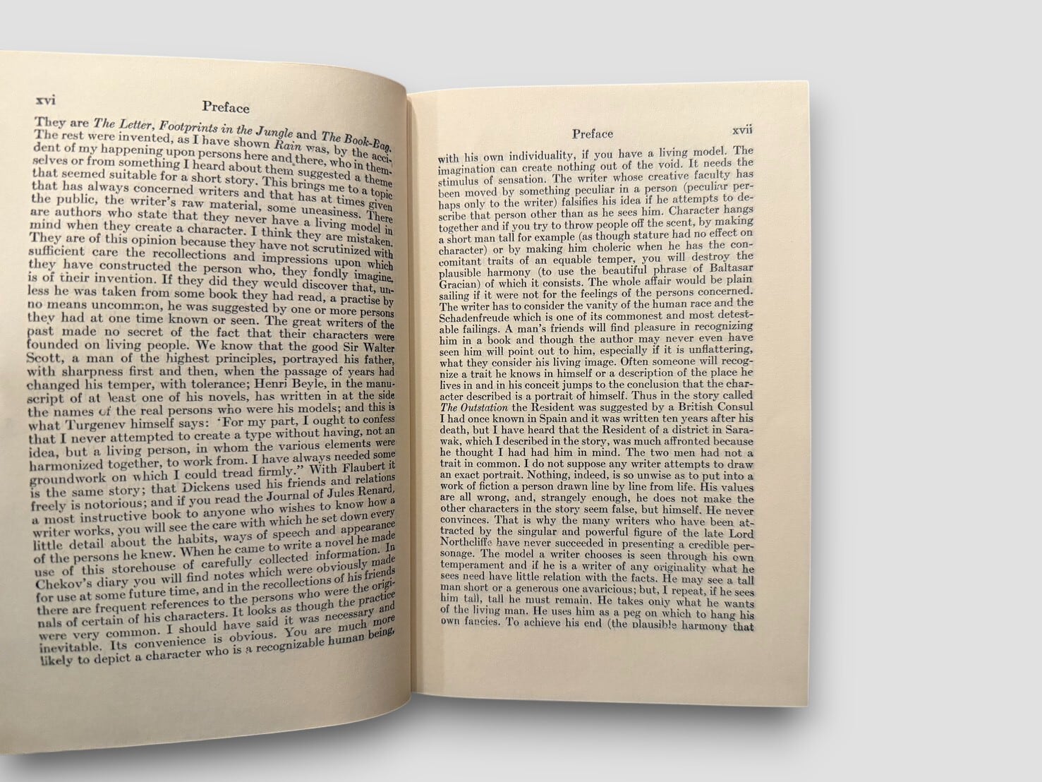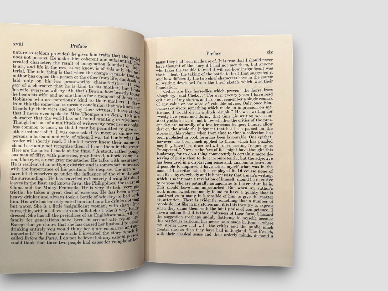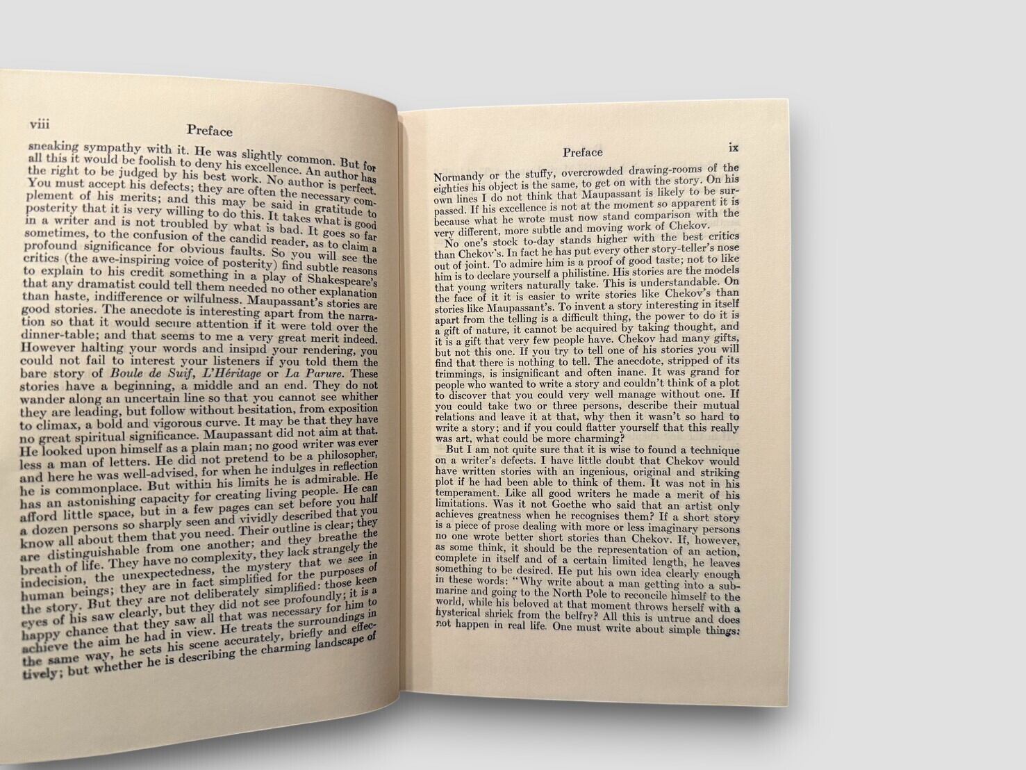 W・サマセット・モームの短篇世界を二巻に収めた Doubleday 版のセット。Volume I “East and West”、Volume II “The World Over” の構成で、モームが長い文業の中で生み出した短篇作品のほぼ全体を収めた決定版的な編集となっている。各巻の冒頭にあるモーム自身による長い序文も魅力的な、スリップケース付きの全2巻本揃。