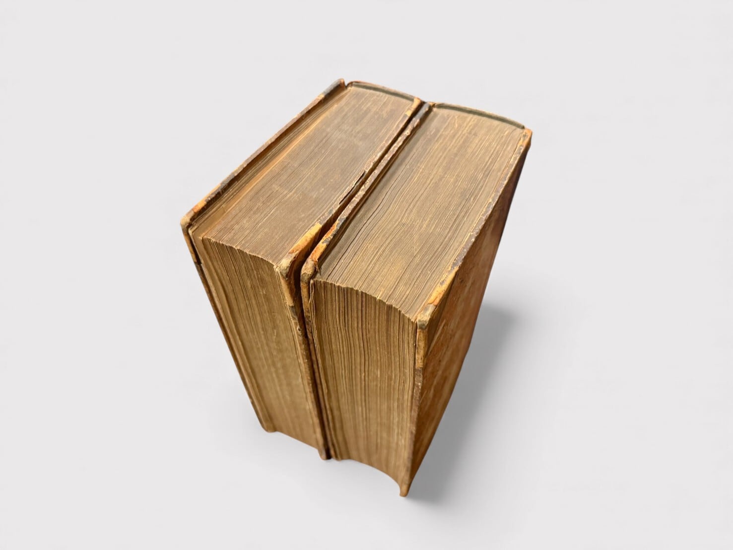Body : Poor - 両巻ともジョイント(継ぎ目)に大きな破損があり、表紙・裏表紙は現在わずかに保持されているものの、近いうちに完全に分離する可能性が高い状態です。現状わずかに接着している箇所も、お取り扱いや輸送の過程で外れる場合がございます。装丁の状態は大変厳しいものですが、本文の保存状態は比較的良好で、資料的価値を勘案して出品しております。