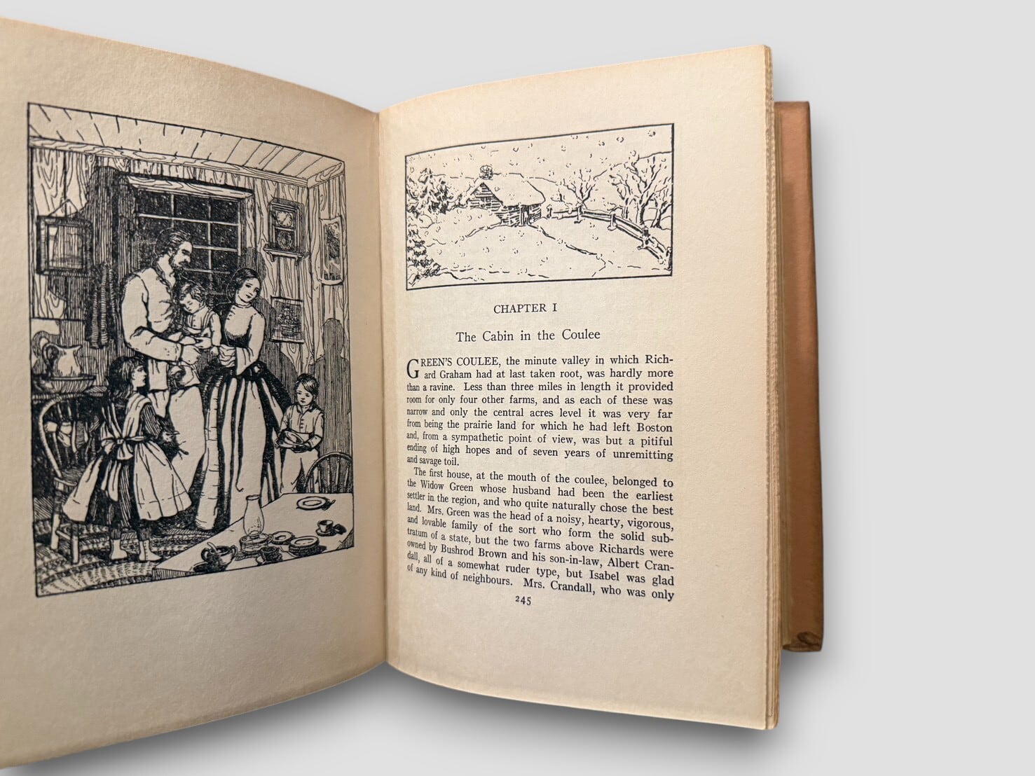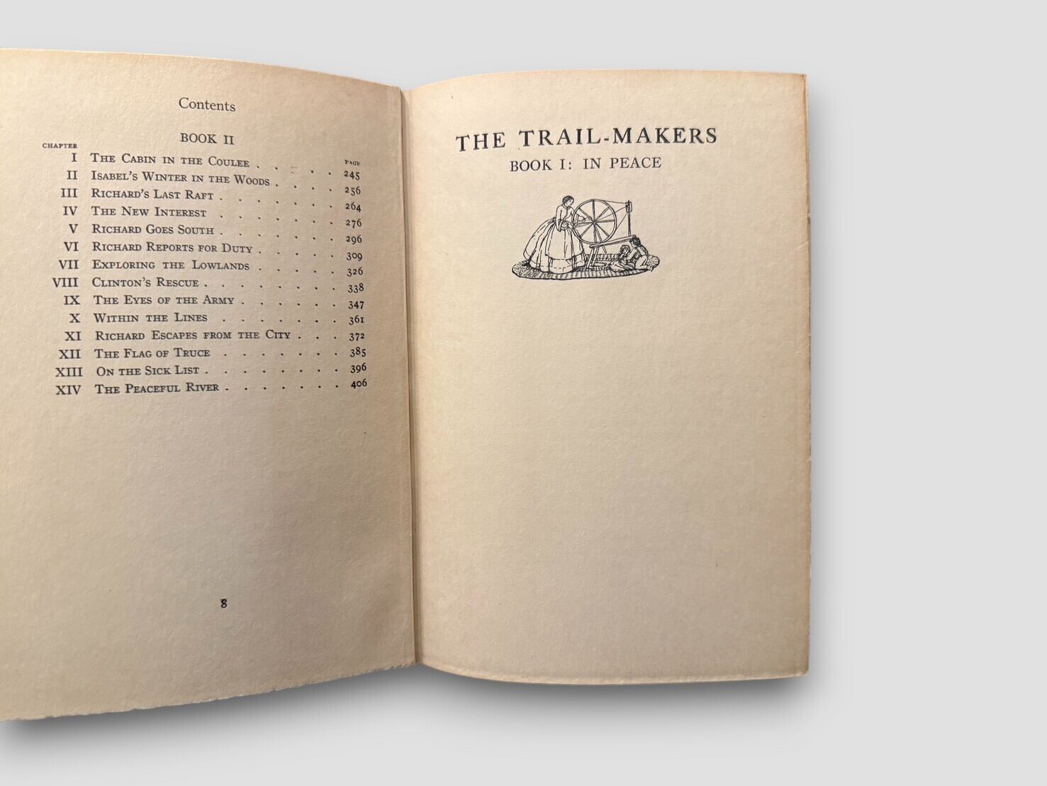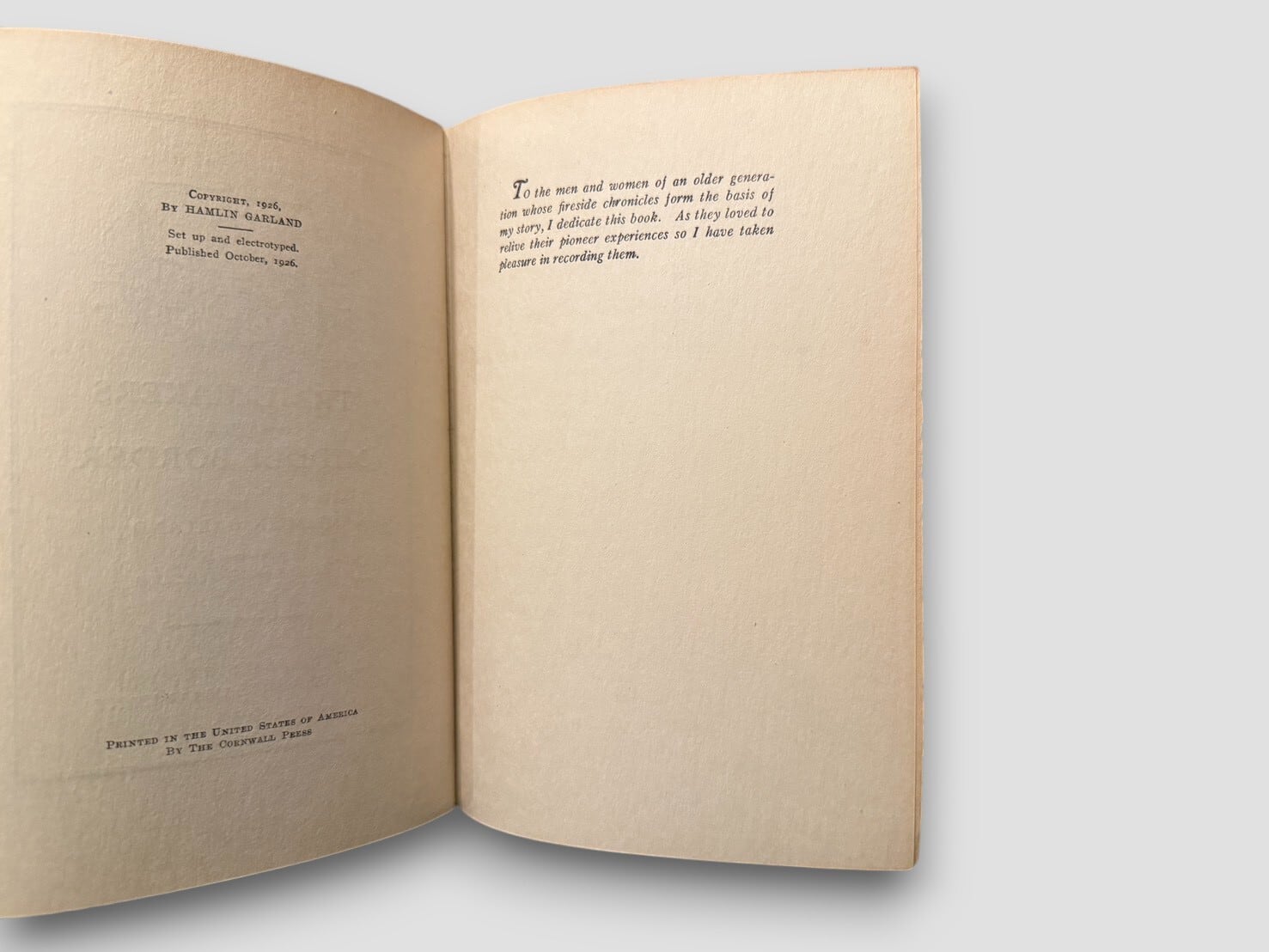 開拓期アメリカの生活と人々の歩みを題材とした Hamlin Garland の物語作品。Book I では、少年時代の体験や移住、農耕生活が穏やかな筆致で綴られ、Book II では、南北戦争期の動員、市街地からの脱出、救出行動など、時代の緊張を映す情景が描かれている。ジャケット付きの貴重な初版。