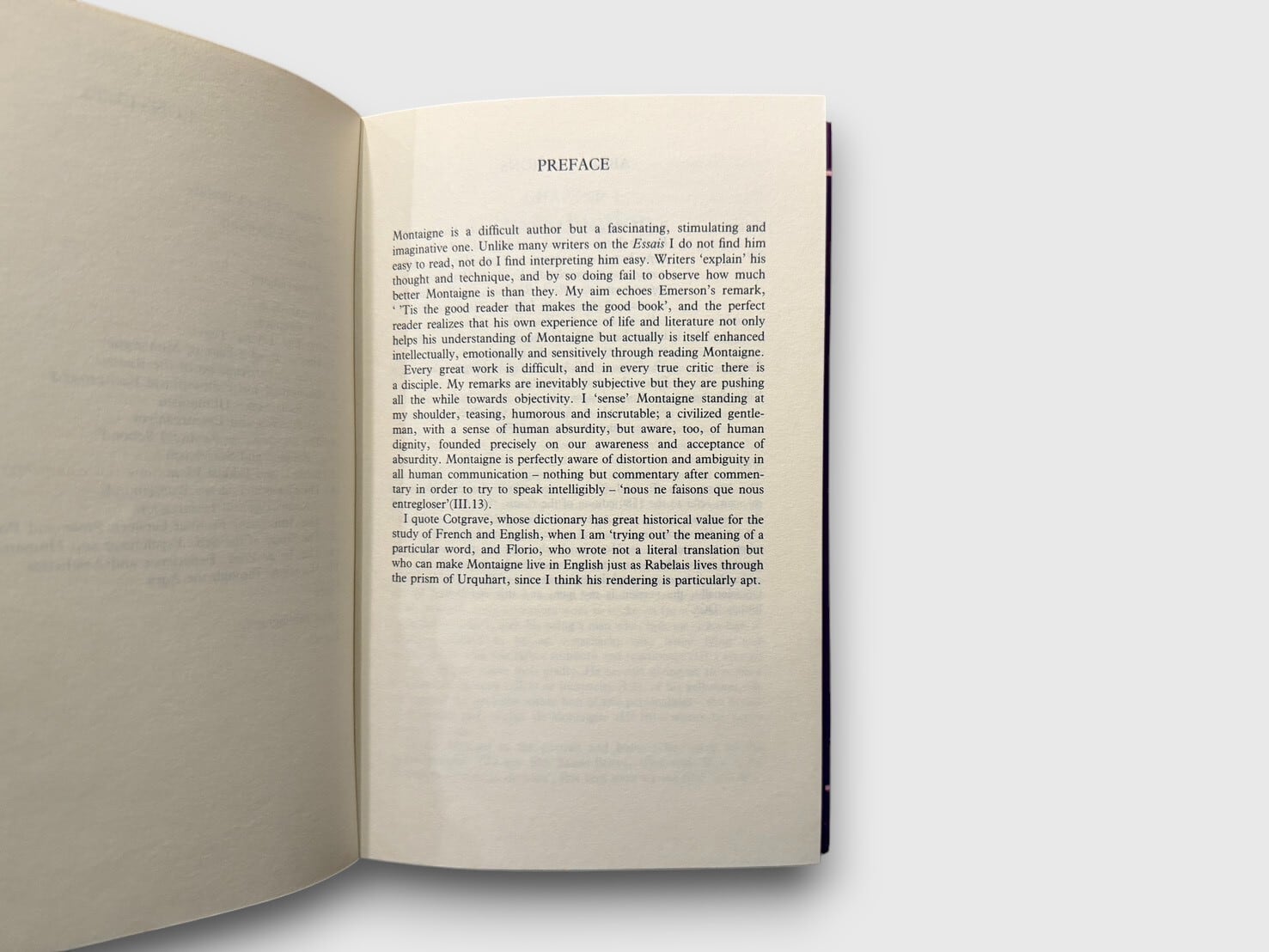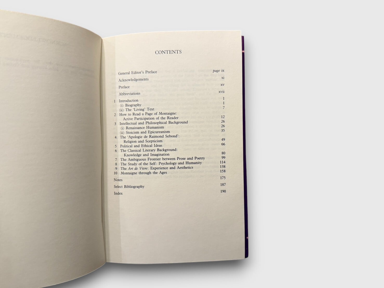 フランス・ルネサンスを代表する随筆家ミシェル・ド・モンテーニュ(1533–1592)の『エセー』を精読するための批評的入門書。巻末には Notes・Select Bibliography・Index を備えており、モンテーニュの思想・文体・批評史を学ぶために十分な手引きとなっている。1987年刊行初版。