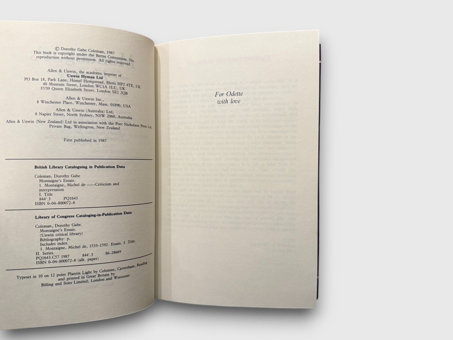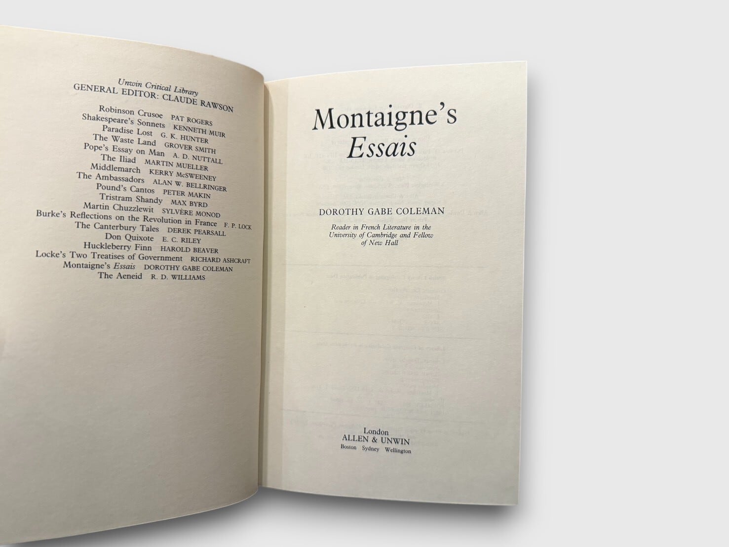 【SL1038】【FIRST EDITION】Montaigne’s Essais(1987) /Dorothy Gabe Coleman