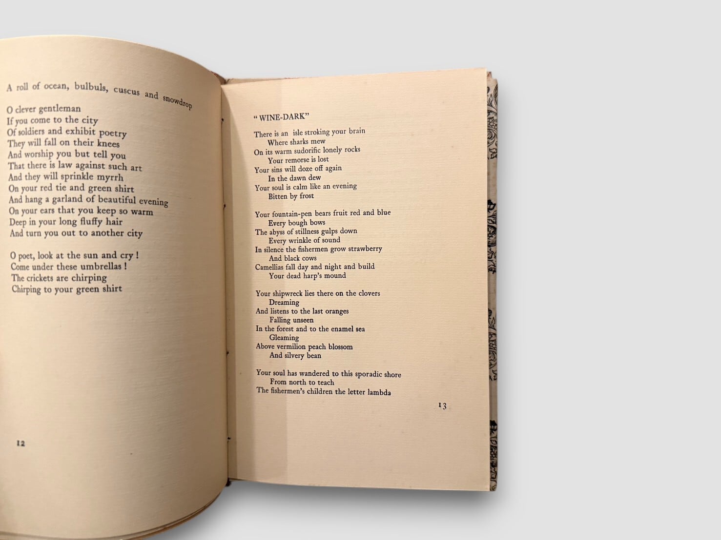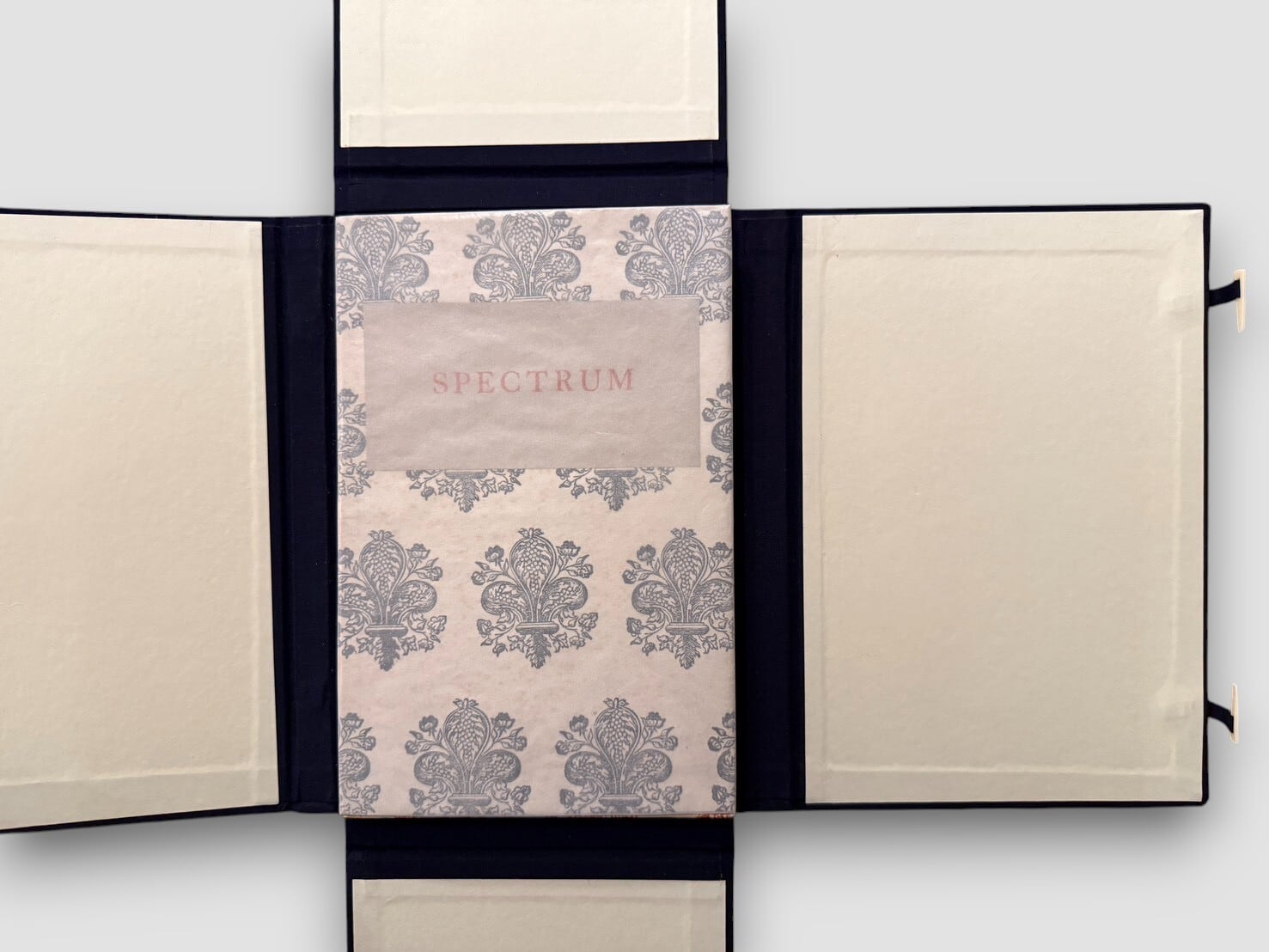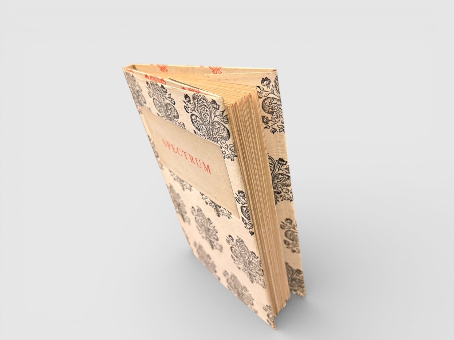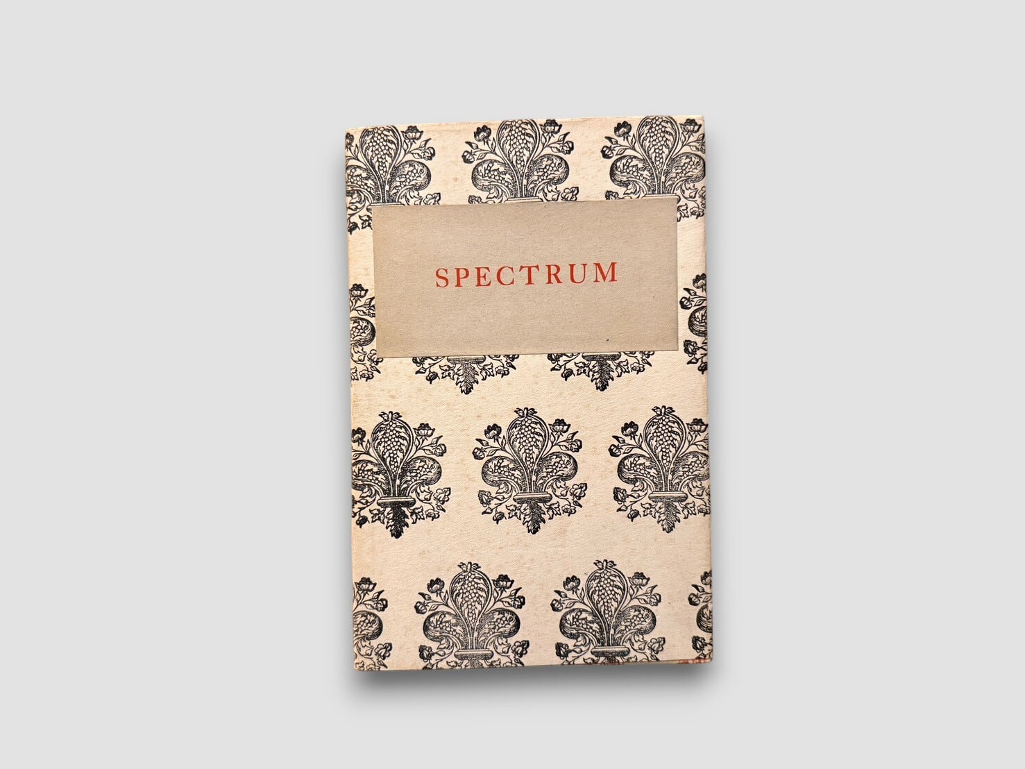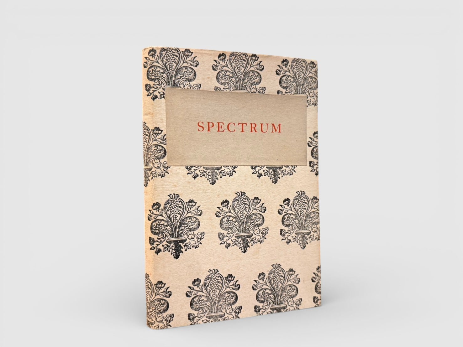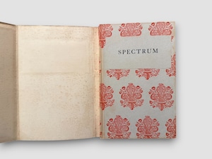 日本のモダニズム詩を代表する詩人・批評家である西脇順三郎が J. Nishiwaki 名義で刊行した英語詩集。本書は 1925年、ロンドンの The Cayme Press により private pressとして刊行された、西脇の詩業における重要な初期作品である。1920年代にイギリスに在籍していた西脇は、同時代の英米モダニズム詩の潮流のなかで英語による実験的詩作を行い、本書にその成果を結実させた。本作『Spectrum』は、日本近代詩が国際的モダニズムと強く接続した最初期の例のひとつとして、文学史上に位置づけられている。The Cayme Press 特有の簡素で洗練された造本様式は、私家版的出版文化の精神を色濃く反映しており、詩の内容と造本の両面から当時の前衛的感覚を伝える。後年の日本語詩集『Ambarvalia』へと連なる西脇詩学の形成過程の一端を示す、きわめて重要な一冊といえるだろう。