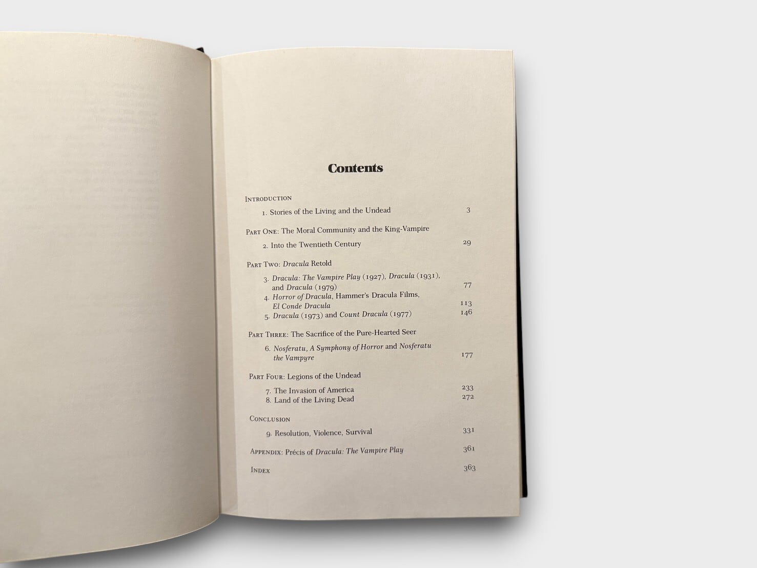 ブラム・ストーカー『ドラキュラ』から、ジョージ・A・ロメロ『ゾンビ(Dawn of the Dead)』に至るまで―吸血鬼とゾンビという「アンデッド」の表象が、西洋文化の中でどのように語られ、変容してきたのかを精緻に読み解く一冊。文学作品と映画表現を横断しながら、恐怖の物語が社会的・倫理的想像力とどのように結びついてきたのかを論じ、ホラー研究・映画研究双方において基礎文献とされる重要作。1980年代アメリカにおける学術的ホラー研究の成熟を示す、静かな存在感をもつ研究書。1986年刊行初版。
