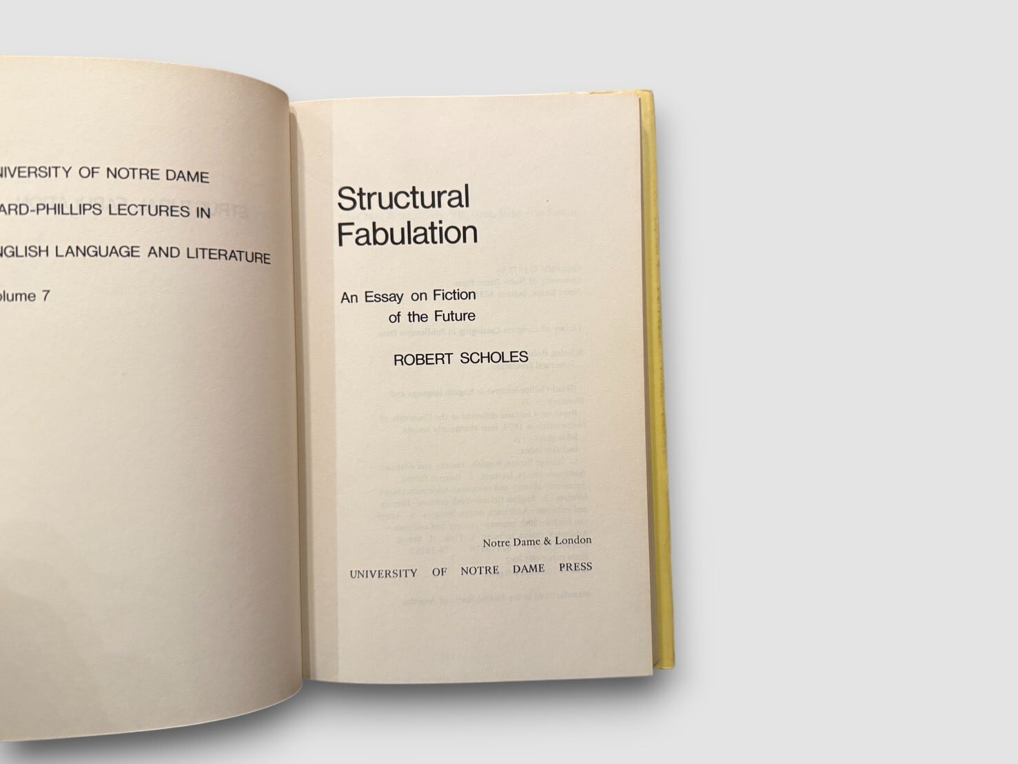 アメリカの文学理論家ロバート・ショールズによる、SF(サイエンス・フィクション)を中心に現代フィクションを理論的に考察した重要な評論書。副題 An Essay on Fiction of the Future が示す通り、本書はジャンルとしてのSFを論じるだけでなく、物語がいかに「未来」を構想し、現実とは異なる構造をもつ虚構(fabulation)として成立するのかを、構造主義や記号論の影響を背景とした視点から論じている。本書は1974年にノートルダム大学で行われた講義をもとに構成されており、SFを逸脱的なジャンルとしてではなく、現代文学を理解する上で重要な理論的対象として再評価する試みがなされている。文学理論、SF研究、ポストモダン文学に関心を持つ方にとって、現在も参照され続ける基礎的文献の一冊。