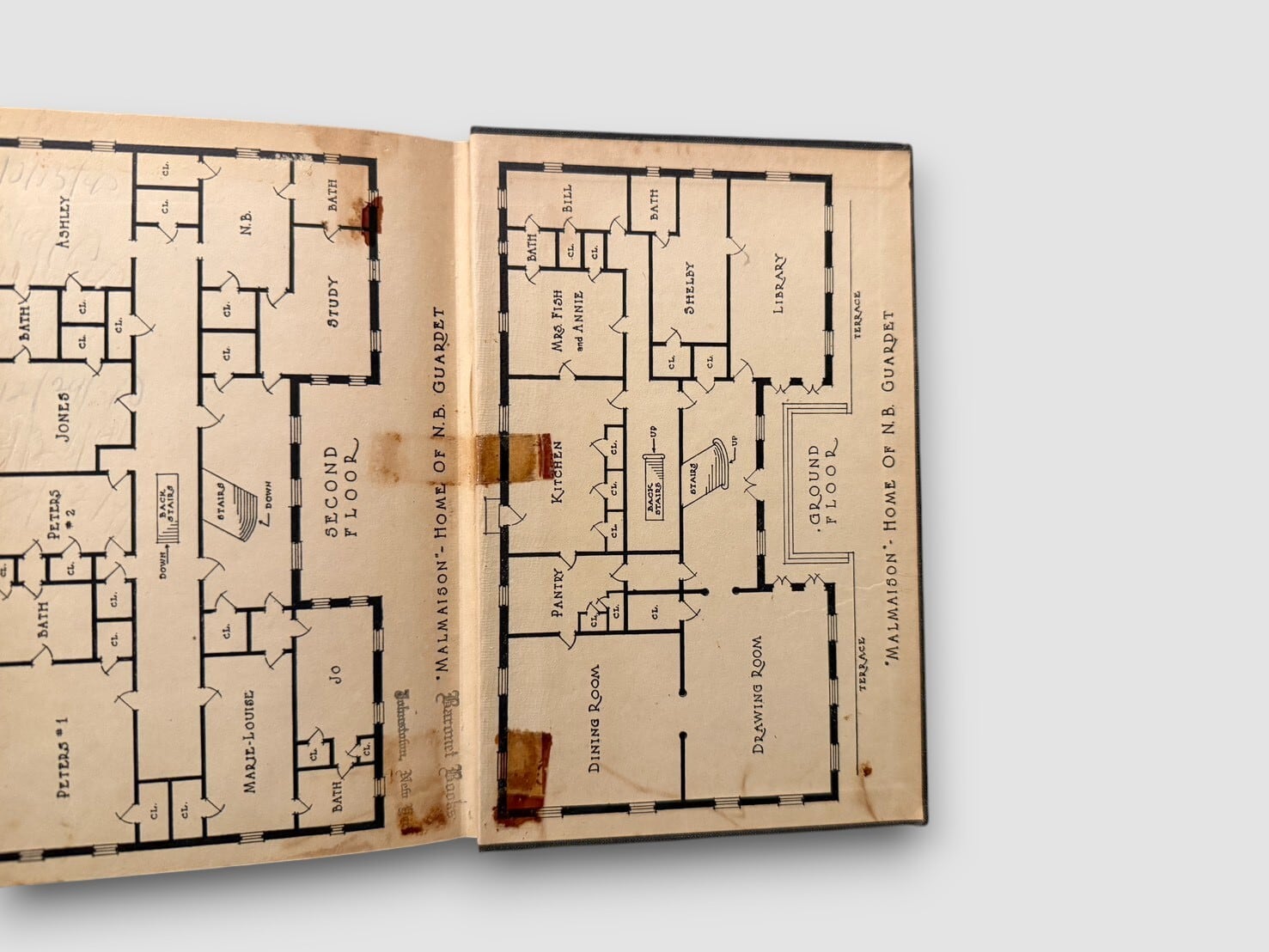 Pages : Fair - 両見開きページに目立つテープ跡とテープはがし跡有(どちらもかなり変色している)/ページ全体ヤケ/シミ少々有