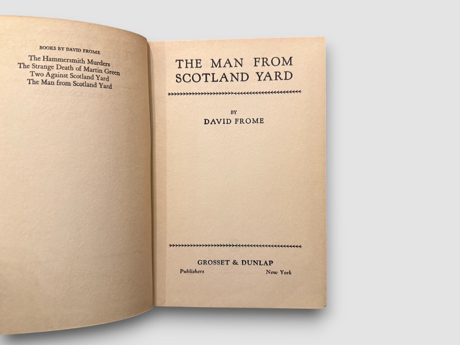 1930年代に活躍した英米犯罪小説作家、デイヴィッド・フロムによる犯罪小説。スコットランド・ヤードをめぐる捜査を軸に展開する物語は、当時の英米犯罪小説らしい簡潔な文体とテンポのよい構成を特徴としており、1930年代ミステリーの雰囲気をよく伝えている1冊となっている。1932年刊行。