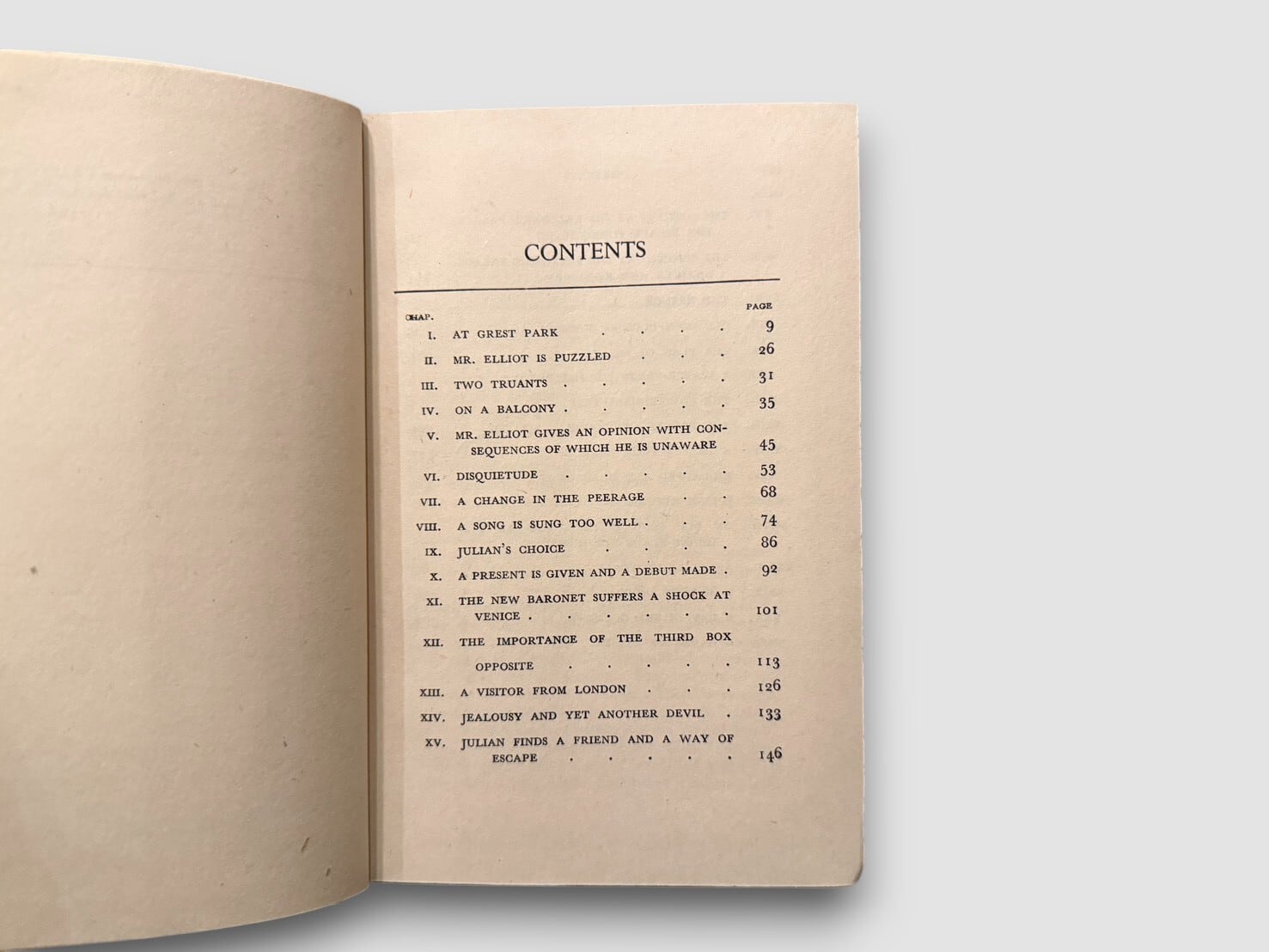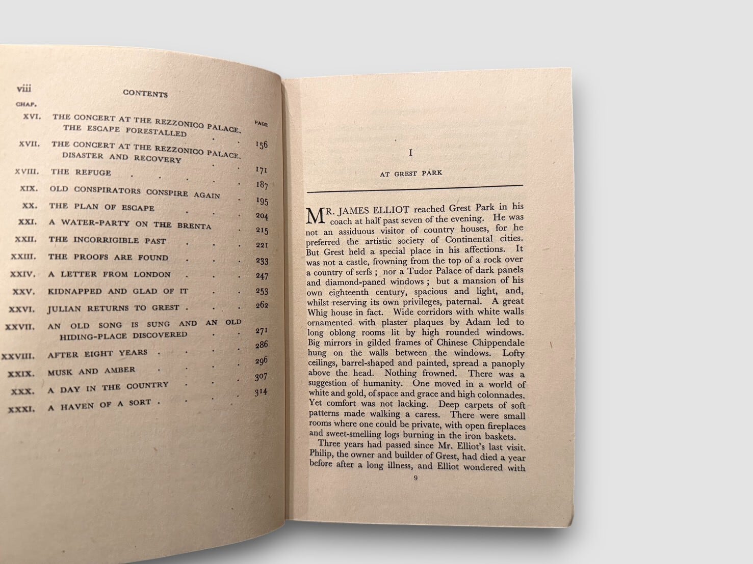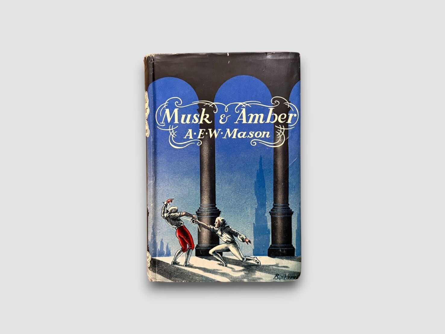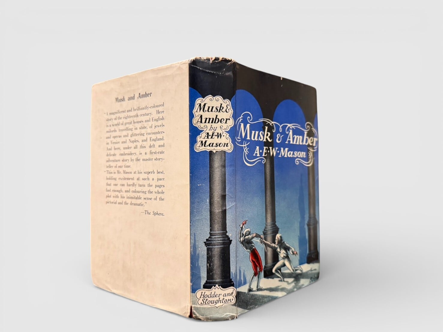 A. E. W. Masonによる長編小説『Musk and Amber』。18世紀ヨーロッパを舞台に、政治的陰謀、忠誠と裏切り、恋愛的要素が絡み合う物語が展開される。冒険小説としての推進力と、歴史ロマンス的な華やかさを併せ持つ構成は、Mason作品の成熟した作風をよく示している。舞台設定の壮麗さに加え、登場人物たちの心理的駆け引きが物語に奥行きを与え、読み応えのある一作となっている。1945年に刊行されたジャケット付きリプリント。