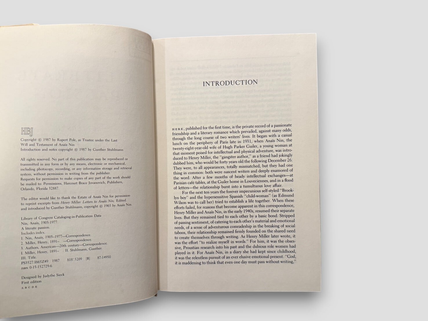 【SL1061】【FIREST EDITION】A Literate Passion: Letters of Anais Nin and Henry Miller 1932–1953(1987) /Anais Nin & Henry Miller
