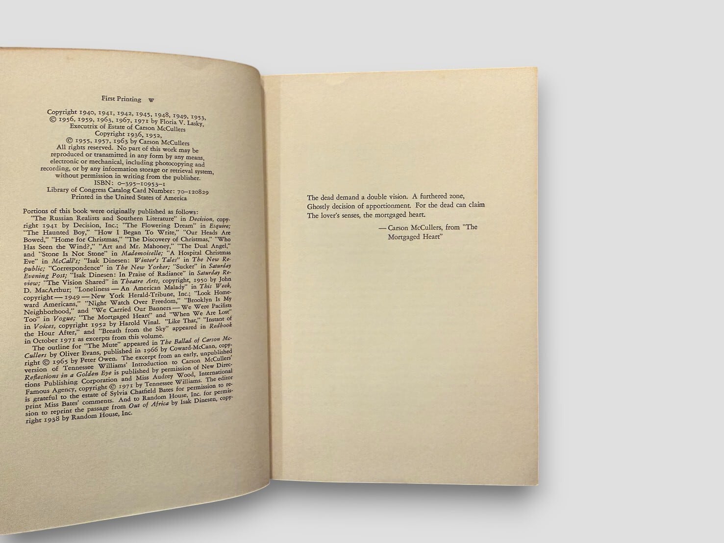 【SL1062】【FIREST EDITION】【FIRST PRINTING】The Mortgaged Heart(1971) /Carson McCullers