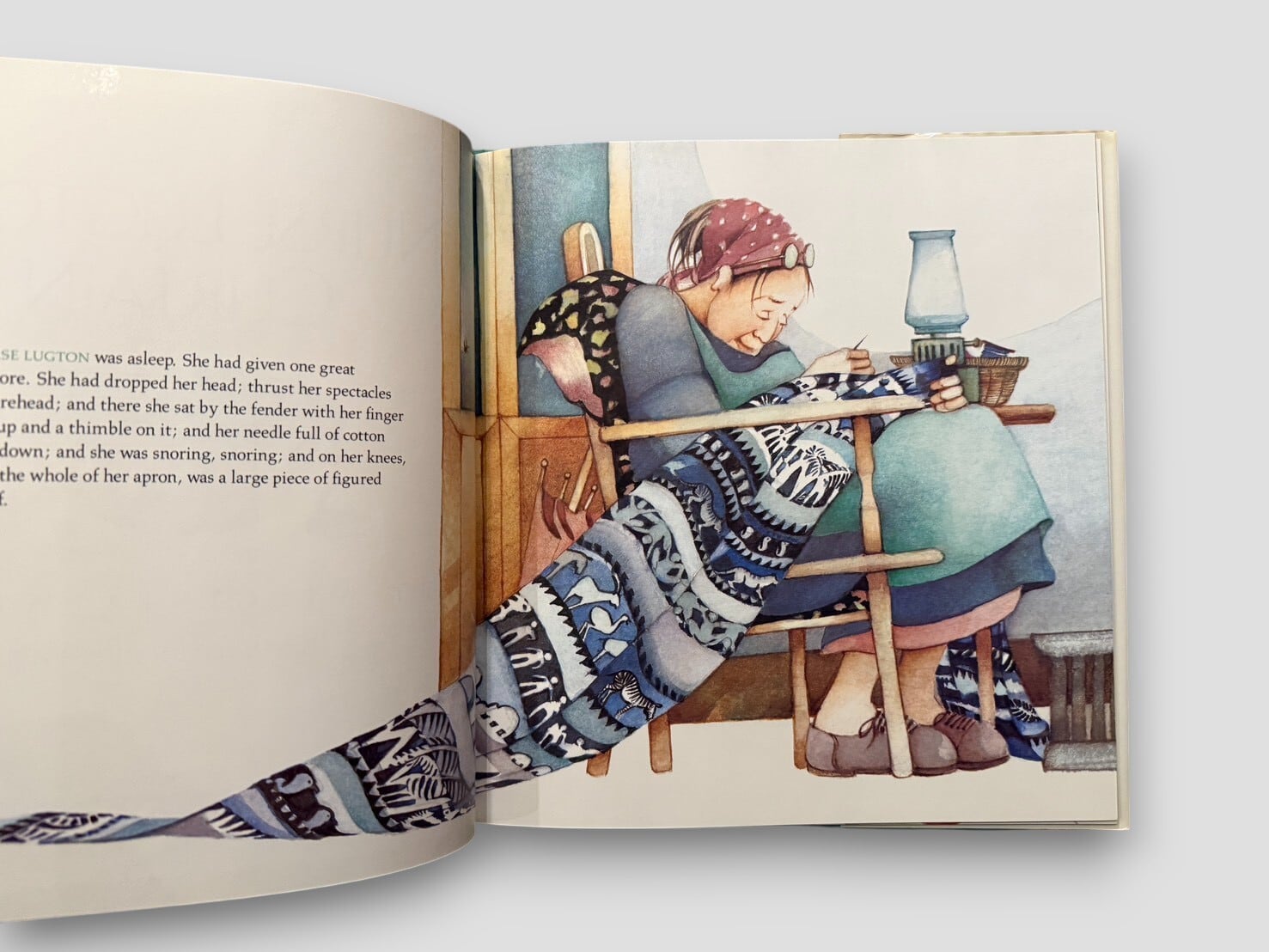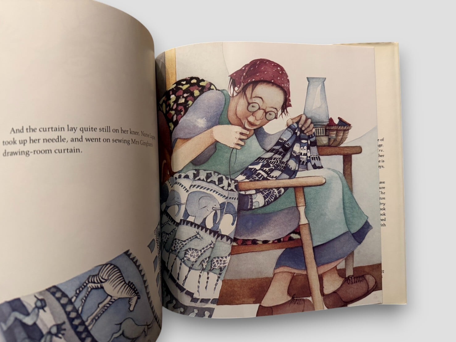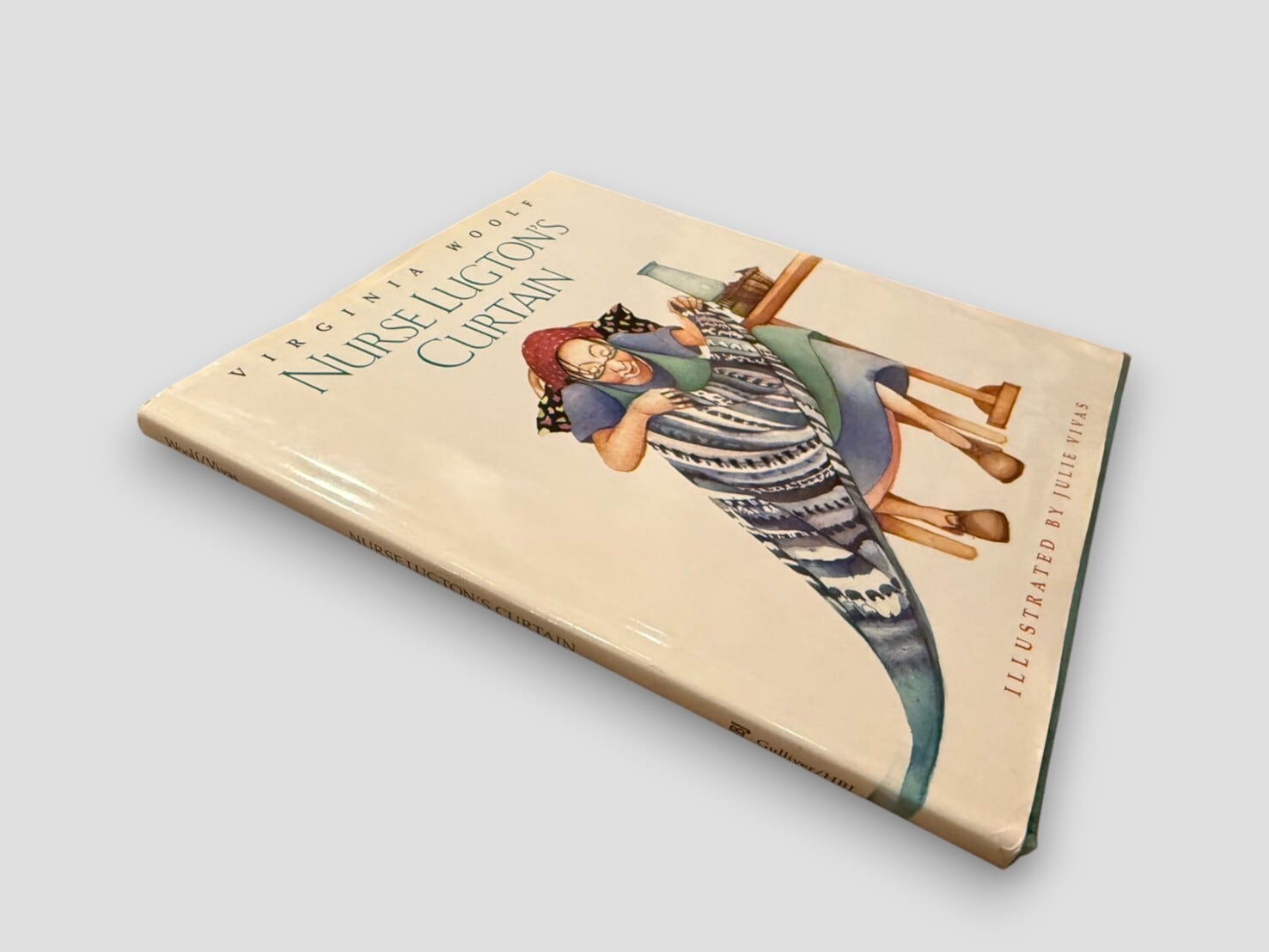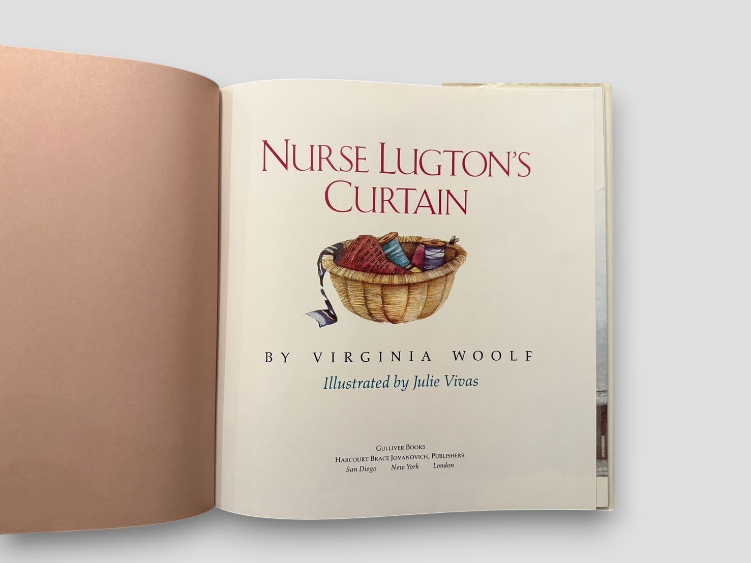 ヴァージニア・ウルフが1930年代に書いた未発表の短い物語をもとに制作された絵本作品『Nurse Lugton’s Curtain』。1991年刊行初版。挿絵はオーストラリアの画家ジュリー・ヴィヴァスが手がけている。日常と想像力の境界がやわらかに溶け合う物語で、ウルフ特有の感受性と詩的な視線が、絵本という形式の中で丁寧に生かされている素敵な1冊。