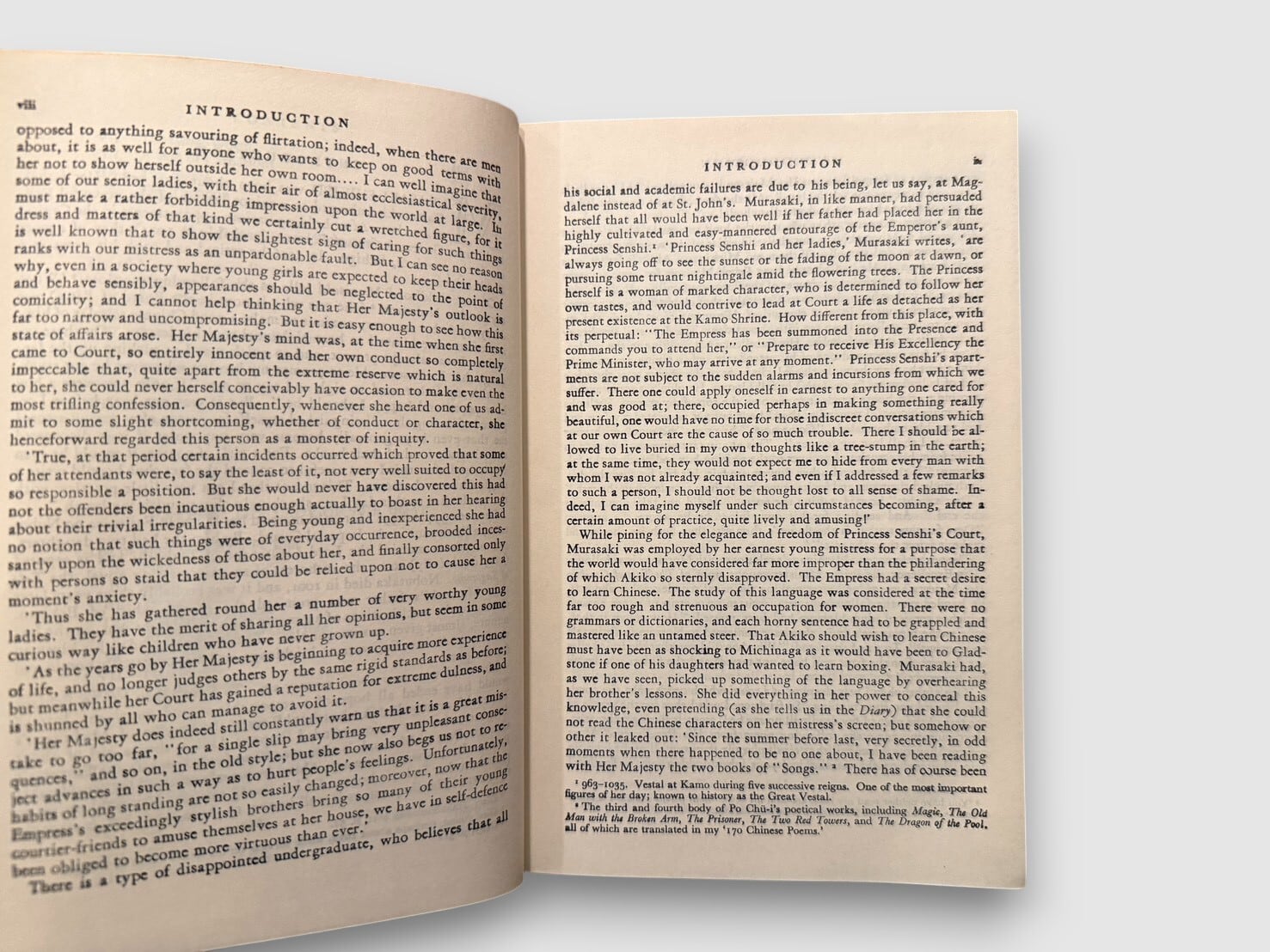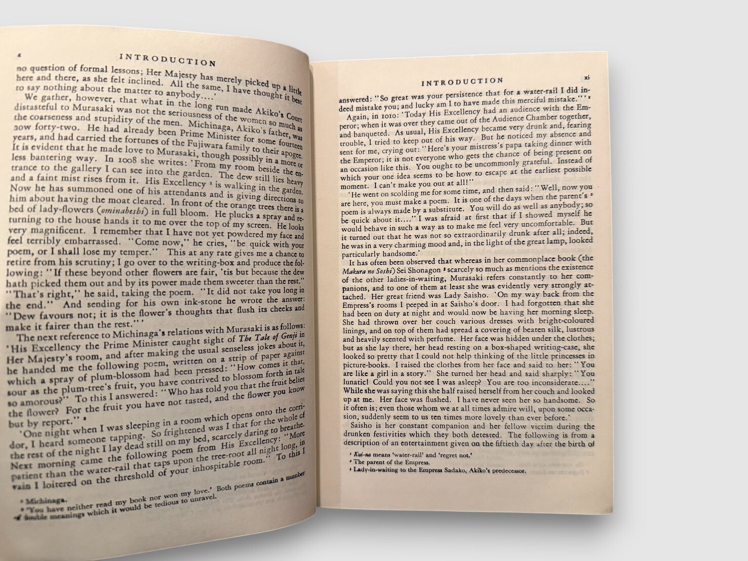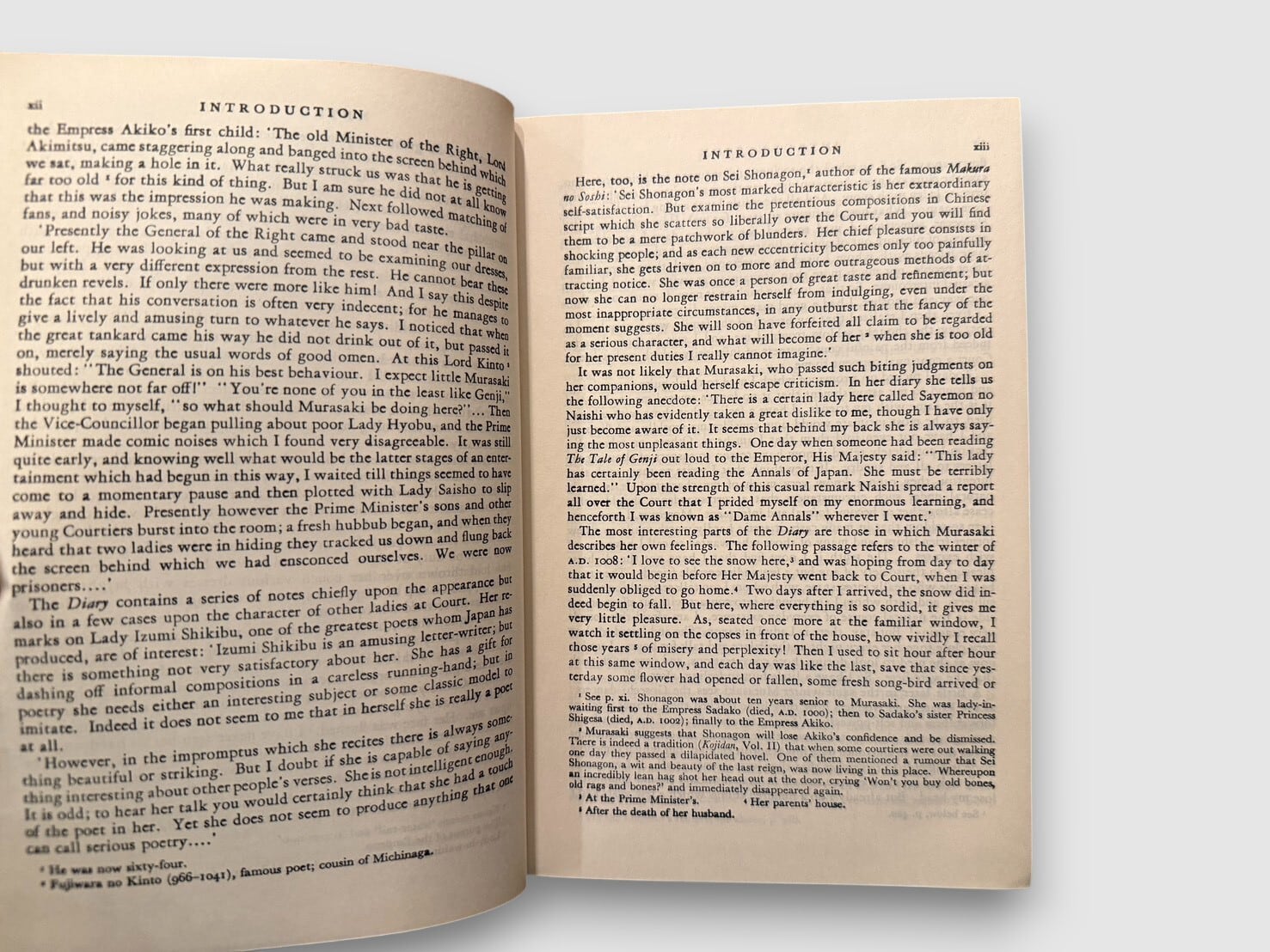 11世紀初頭に紫式部によって書かれた『源氏物語』を、20世紀英文学を代表する翻訳家アーサー・ウェイリーが英訳した名高い一冊。本書は A Novel in Six Parts として構成され、表紙に “Complete and Unabridged” と明記されたフルレングスの英訳版。後年より厳密な学術的全訳が登場した現在においても、本書はなお「古典的英訳の決定版(classic English translation)」として評価され続けており、日本古典文学が世界文学として受容されていく過程を象徴する歴史的名訳とされ、文学史・翻訳史の双方において重要な位置を占める一冊である。1960年刊行モダン・ライブラリー・ジャイアント版初版。