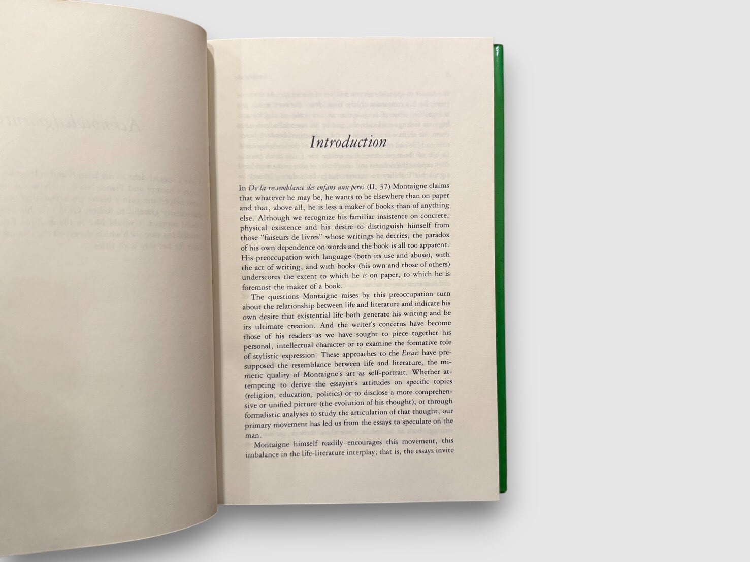 16世紀ルネサンス期のフランスを代表する哲学者、ミシェル・ド・モンテーニュの『エセー』を、「自己(the self)の書」として読み解く文学思想研究書。著者リチャード・L・レゴシンは、モンテーニュが書くという行為そのものを通して、いかに自己を形成し、思考し、生きようとしたのかを丹念に追っていく。『エセー』は単なる随想集ではなく、友情、時間、身体、言葉、謙虚さ、そして生の技法をめぐる一貫した思索の場であることが、本書を通して明確になる。モンテーニュにとって「本」とは、完成された思想の容器ではなく、自己が生成し続けるプロセスそのものであった。その視点から、本書はテクスト・自己・生の関係を立体的に描き出す。ルネサンス文学研究のみならず、自己論、エッセイ論、哲学的読書に関心をもつ方にとっても、長く参照されてきた重要な研究書である。1977年刊初版。