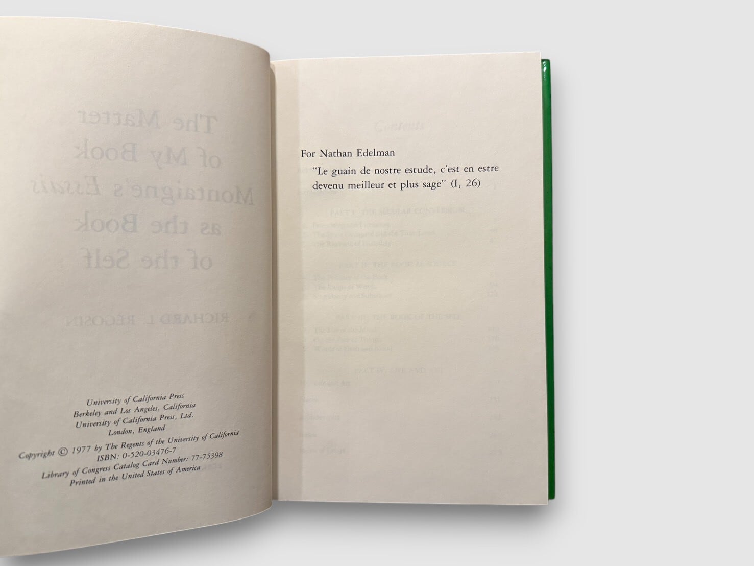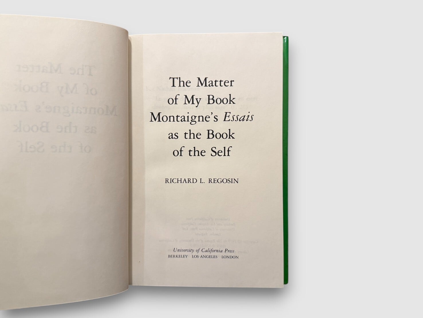 【SL1065】【FIREST EDITION】The Matter of My Book; Montaigne’s Essais as the Book of the Self(1977) /Richard L. Regosin