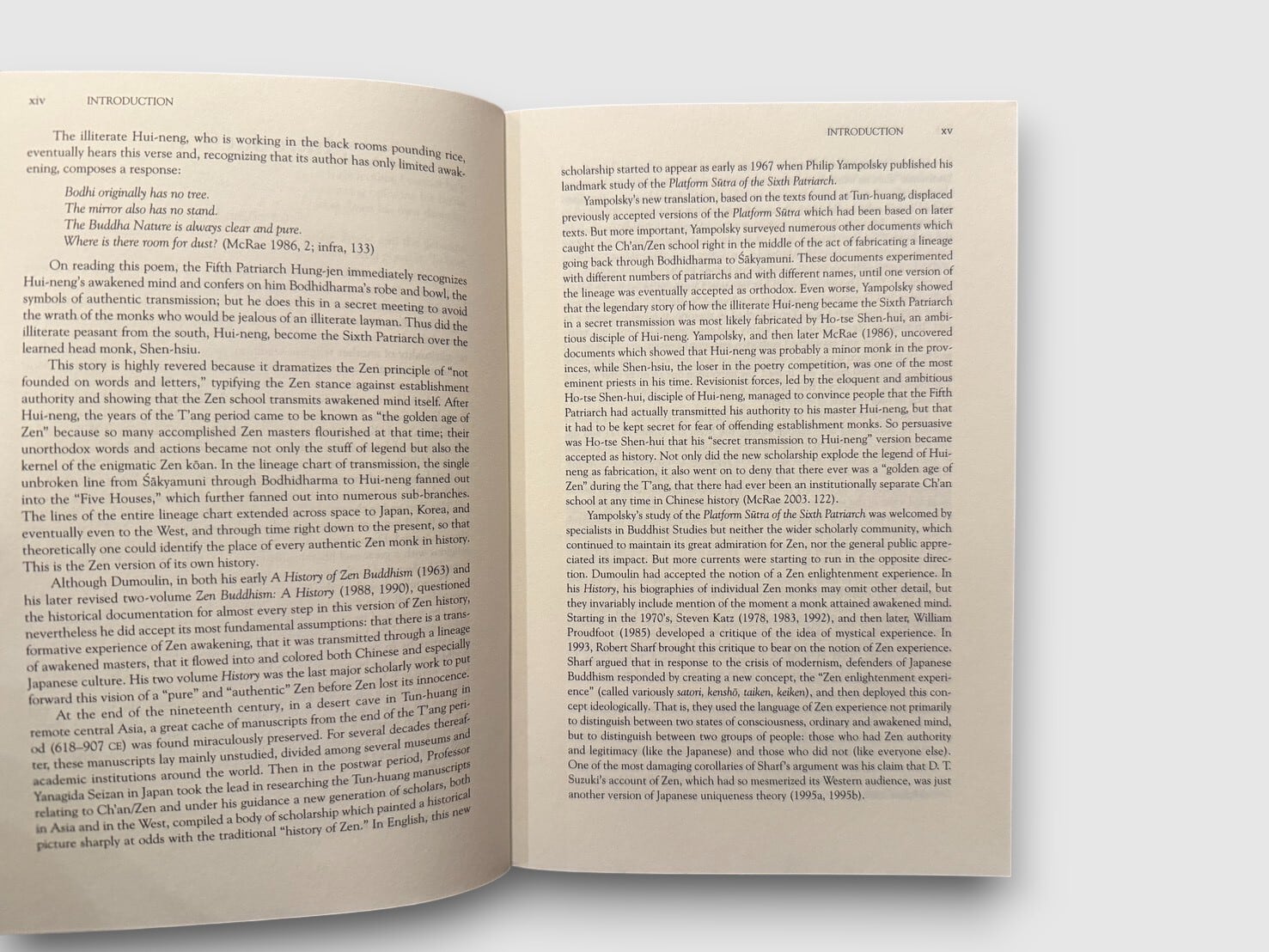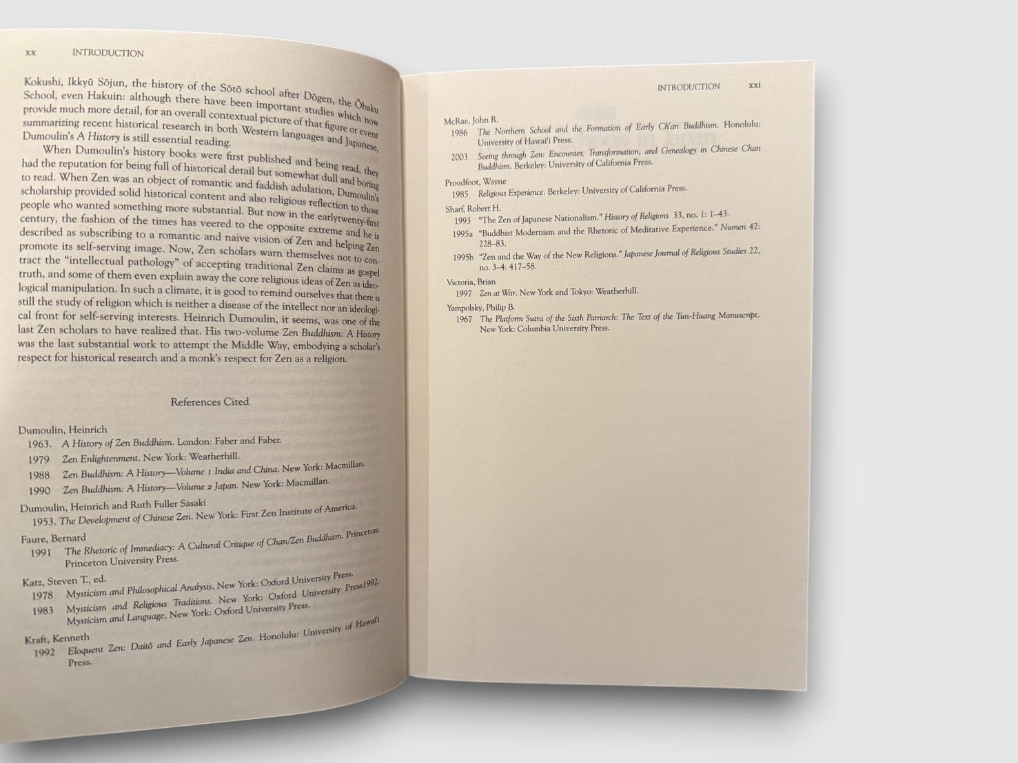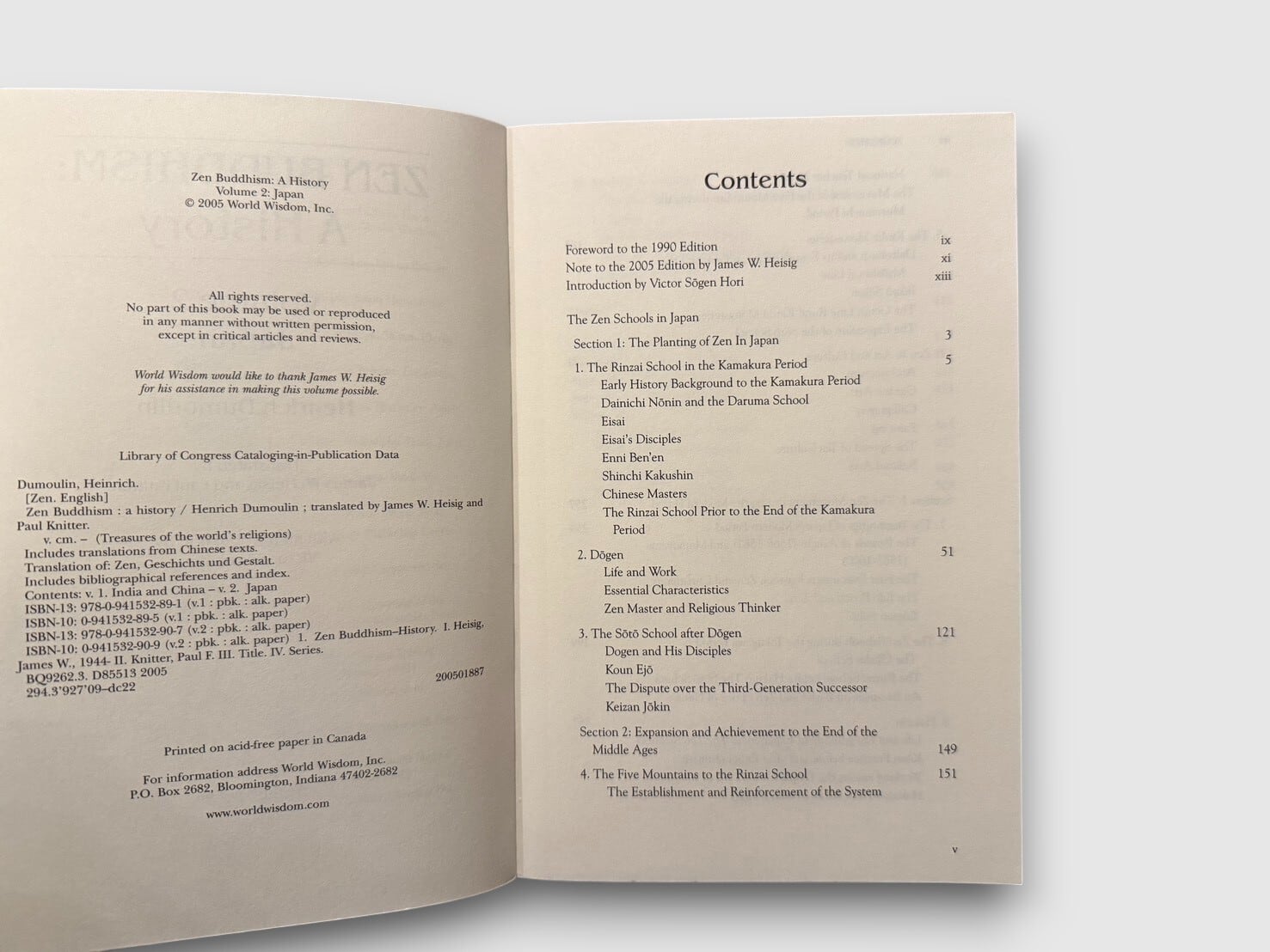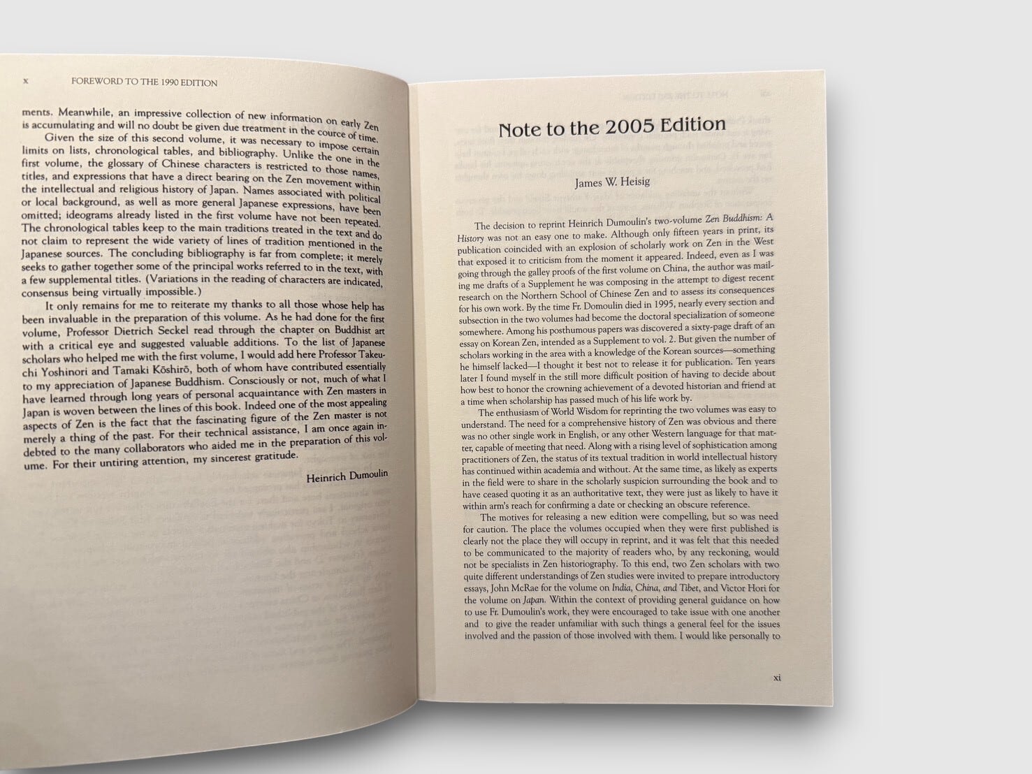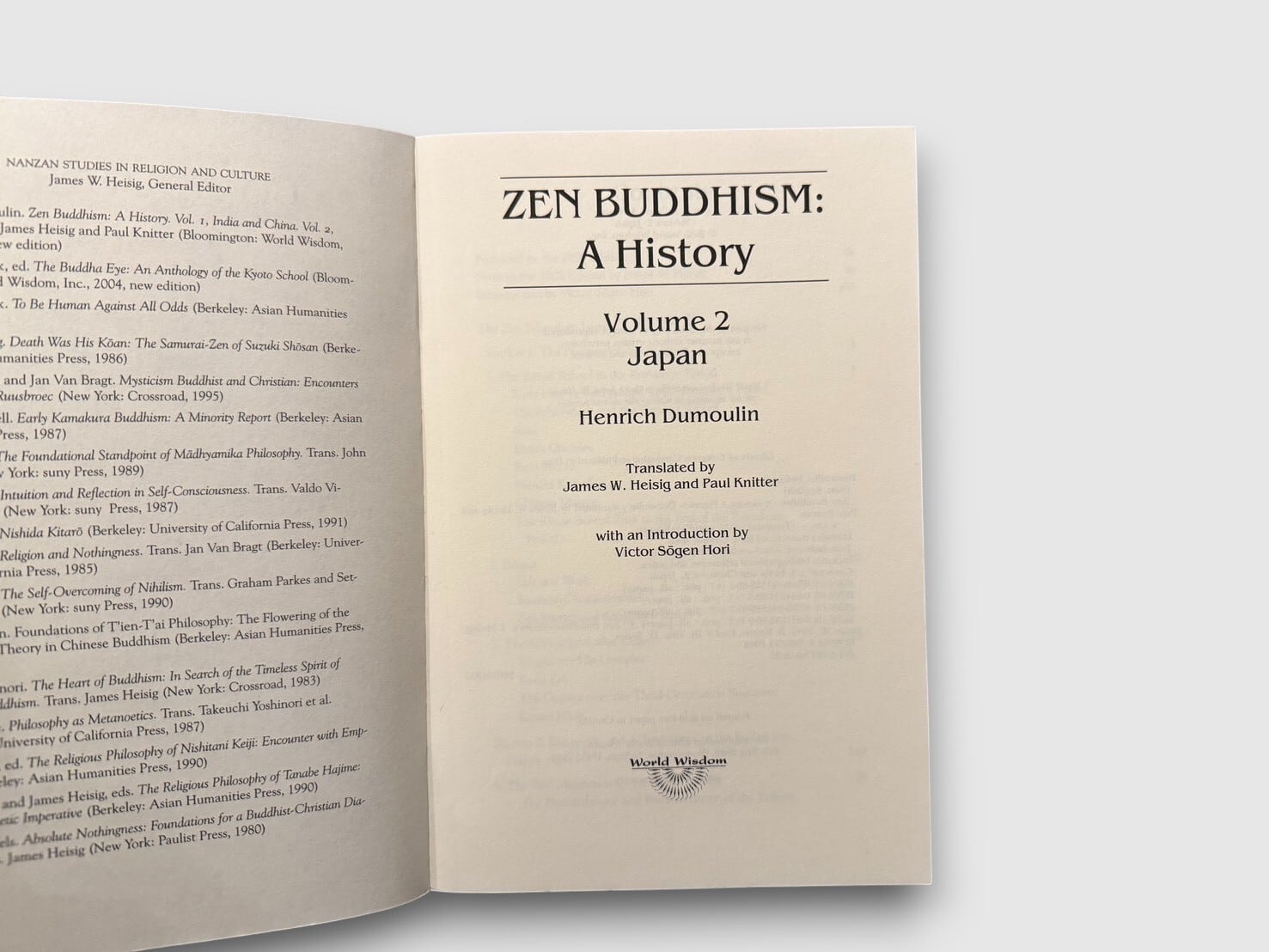 20世紀を代表する禅仏教研究者ハインリッヒ・デュモーリンによる、英語圏における代表的な禅史研究『Zen Buddhism: A History』の第2巻〈日本〉。鎌倉期以降の日本禅の展開を中心に、臨済宗・曹洞宗の成立と制度化、道元・白隠といった主要人物、修行実践、思想的背景、文化的影響を精緻に跡づけている。本書には「Foreword to the 1990 Edition」に加え、「Note to the 2005 Edition」(James W. Heisig)が収録され、1980年代後半以降の研究動向を踏まえた補足と修正が加えられている。2005年刊行ペーパーバッグエディション。