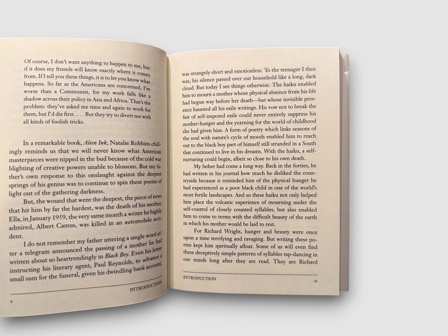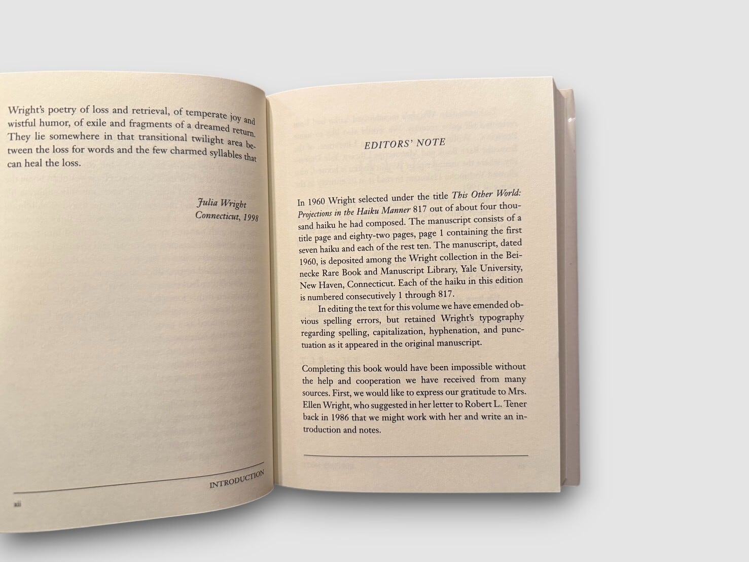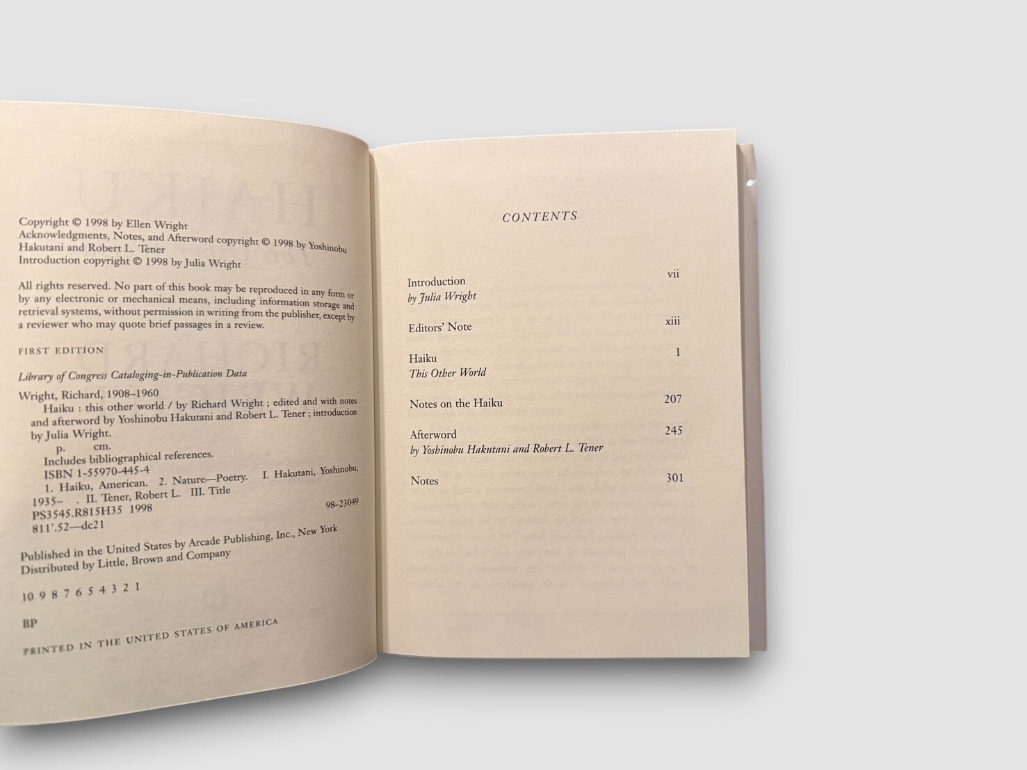 アメリカ文学を代表する作家リチャード・ライトが、晩年に集中的に書き続けた俳句作品をまとめた詩集。編集と注釈はYoshinobu Hakutaniとロバート・L・テナーが担当し、序文は娘のジュリア・ライトによって書かれている。俳句は日本の定型詩に強く影響を受けつつも、自然、孤独、病、記憶、喪失といった主題を通して、アメリカ的経験と普遍的感情を静かに結びつけている。『Native Son』や『Black Boy』で知られるライトの社会的・政治的表現とは異なり、本書では極度に凝縮された言葉によって、内省的で透明度の高い詩世界が展開される。ライト文学のもう一つの到達点を示す一冊。