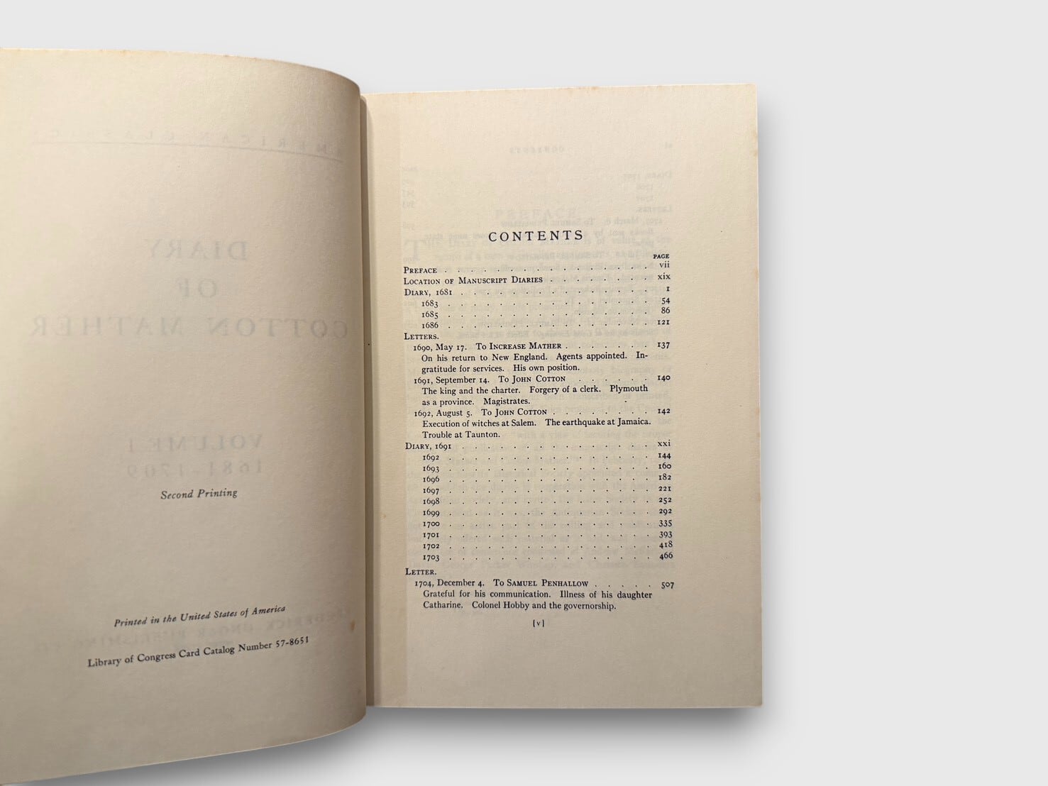 17〜18世紀ニューイングランドを代表するピューリタン神学者コットン・メイザーの私的日記を編纂・刊行した学術史料集。内容は1681年から1724年に及び、植民地社会の日常、宗教的実践、政治的緊張、疫病や災害、知的交流などが克明に記録されている。メイザーは博学で多作な説教師として知られる一方、内面には強い不安と信仰的緊張を抱えていた人物である。本日記には、敬虔さと自己省察、神の摂理への確信と恐怖が複雑に入り混じる精神の軌跡が率直に書き留められており、ピューリタン精神史を知る一次史料として極めて重要である。