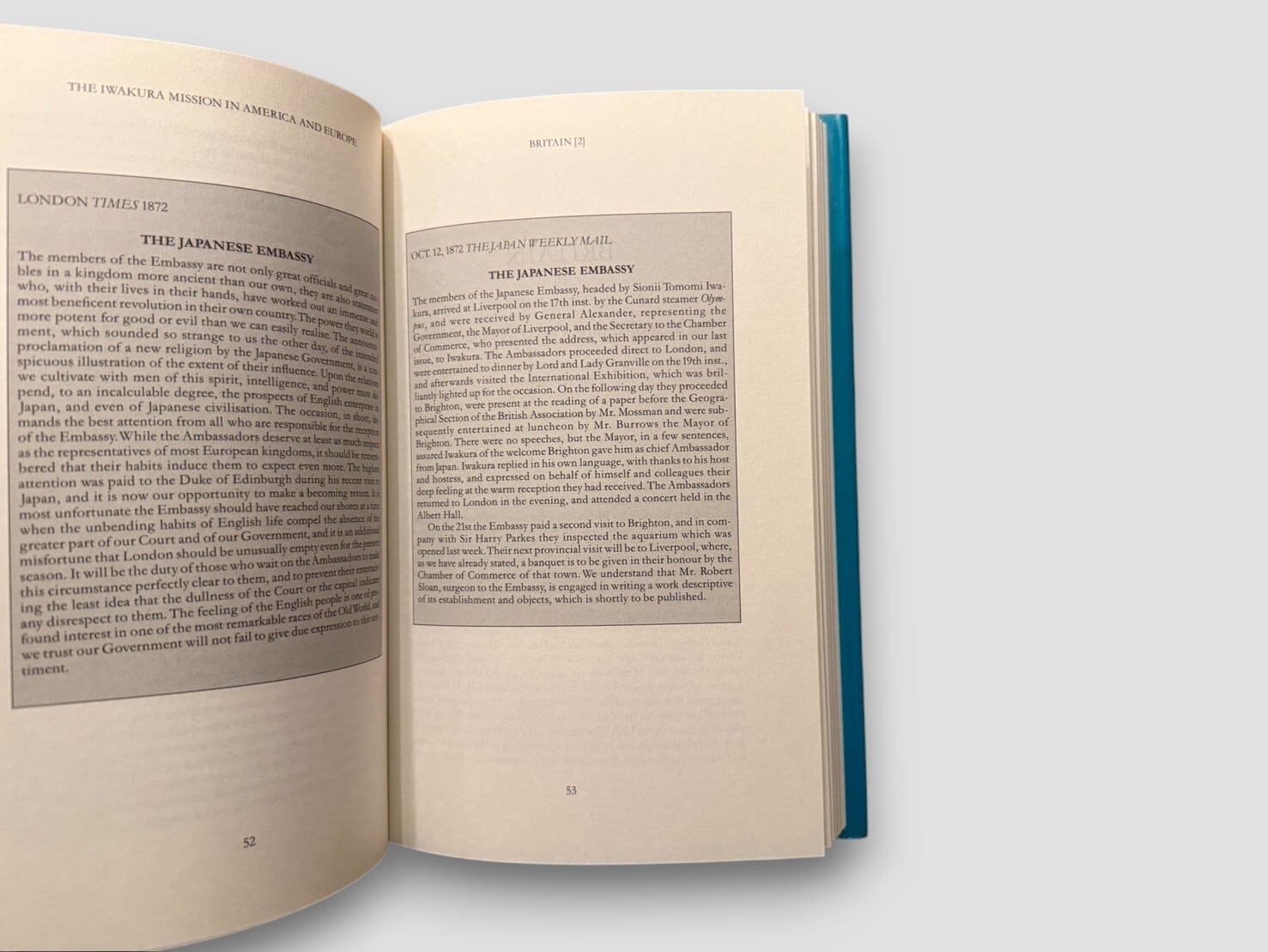 1871–1873年に派遣された岩倉使節団の欧米訪問を、アメリカ、イギリス、フランス、ベルギー、ドイツ、ロシアなど各訪問国別に検討した学術論集。政治外交史にとどまらず、教育、宗教、報道、社会的受容といった多様な視点から、近代日本が西洋世界と初めて本格的に向き合った過程を再検討する点に大きな特色がある。明治日本史、国際関係史、比較近代史研究の分野において、現在も参照される基礎的研究書である。1998年刊行初版。