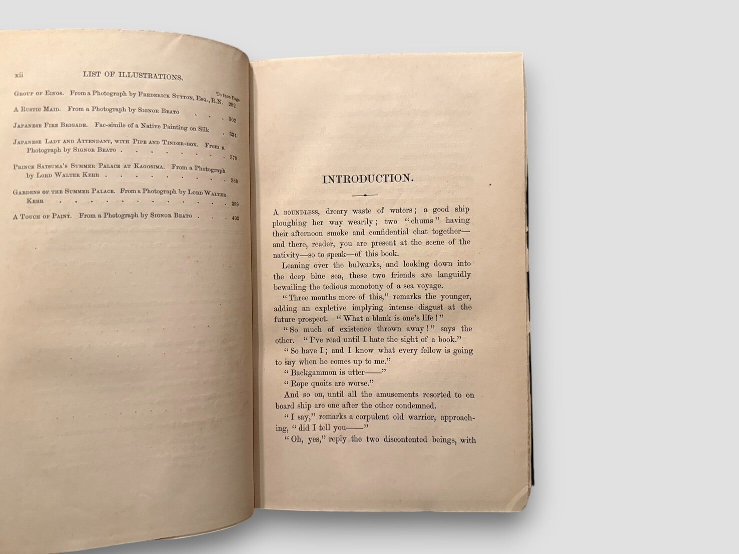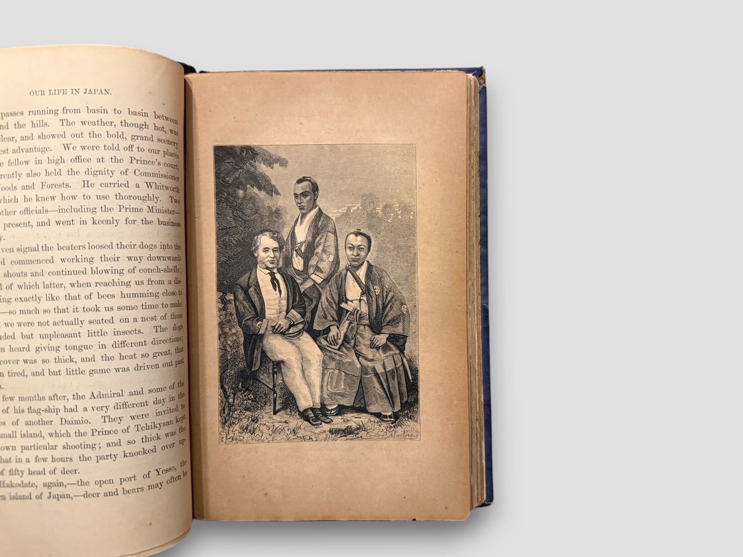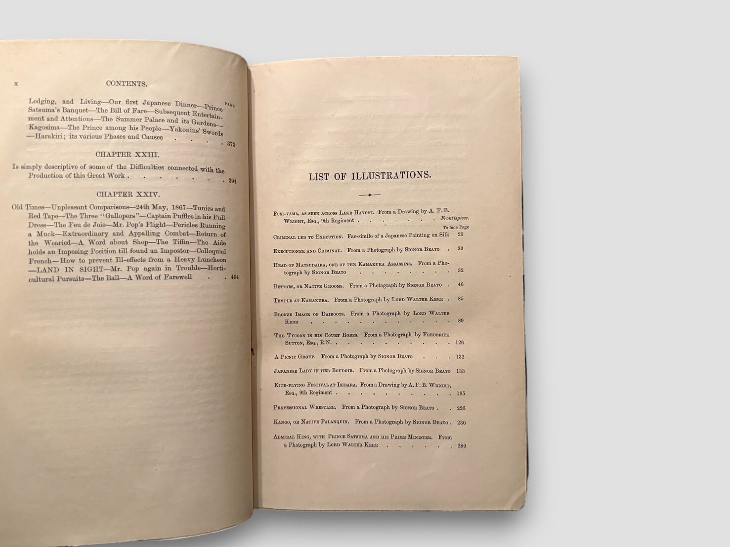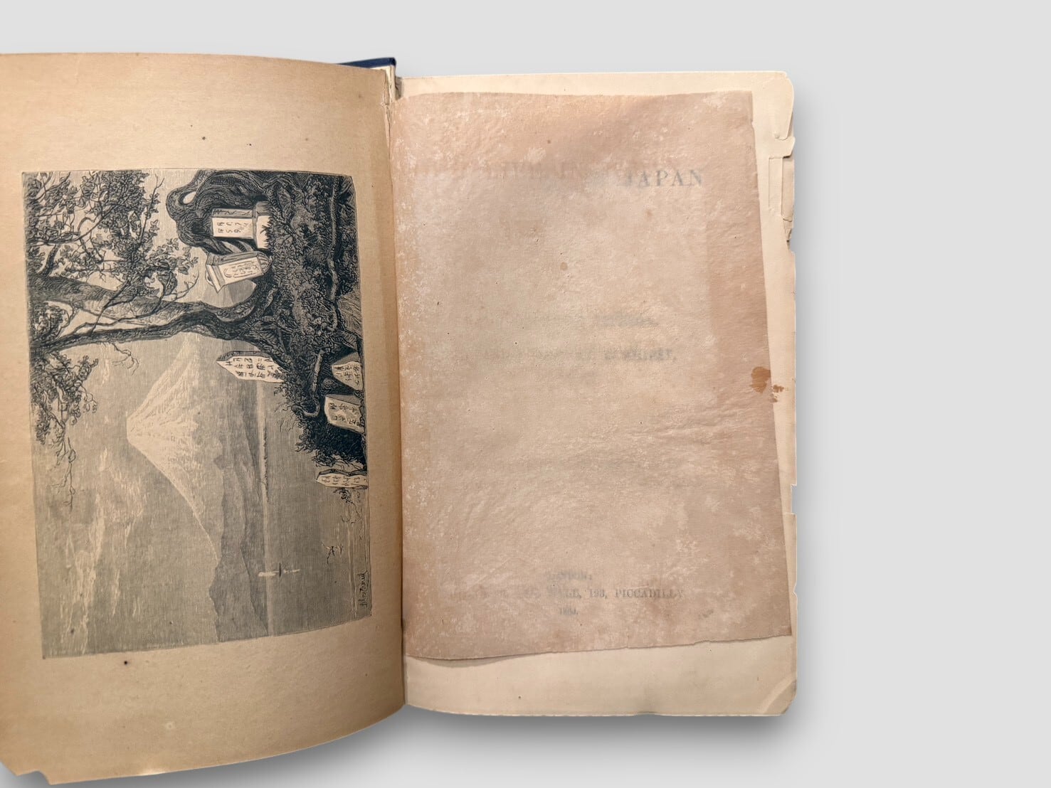 1860年代に来日したイギリス人二人による日本滞在記であり、幕末から明治初期という転換期の日本社会を、西洋人の視点から記録した貴重な旅行文学。口絵には富士山のフロントピースを備え、Felice Beato を含む当時の写真資料や原画に基づく図版を20点収録(うち一部は彩色)。19世紀西洋における日本像の形成過程を、文章と視覚資料の両面から示す内容となっている。近代日本史、異文化交流史、写真史、旅行文学のいずれの分野においても重要な一冊であり、現在では流通数の限られた、資料的価値の高い初版である。