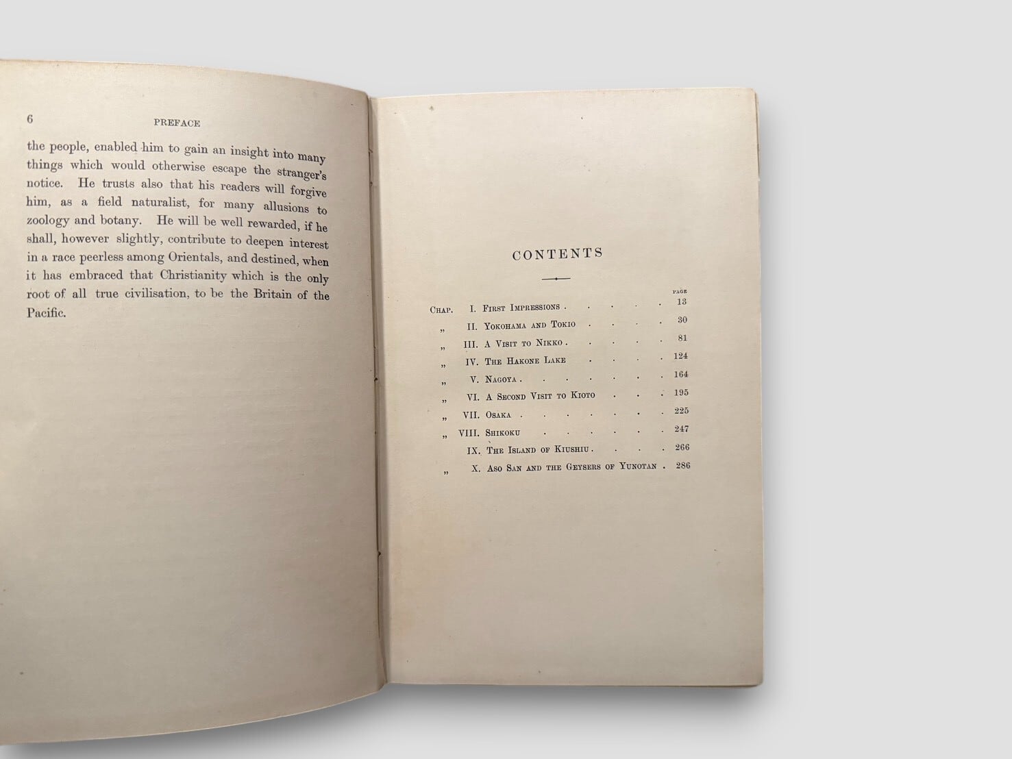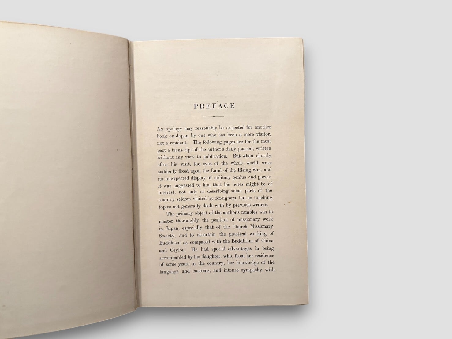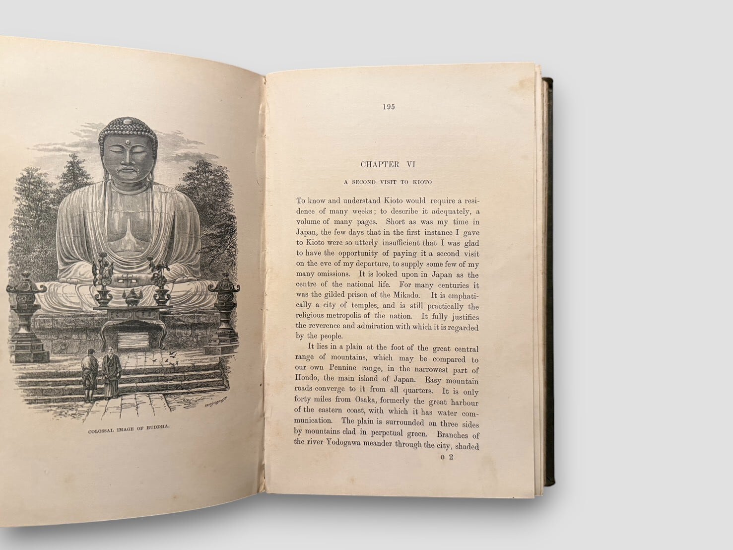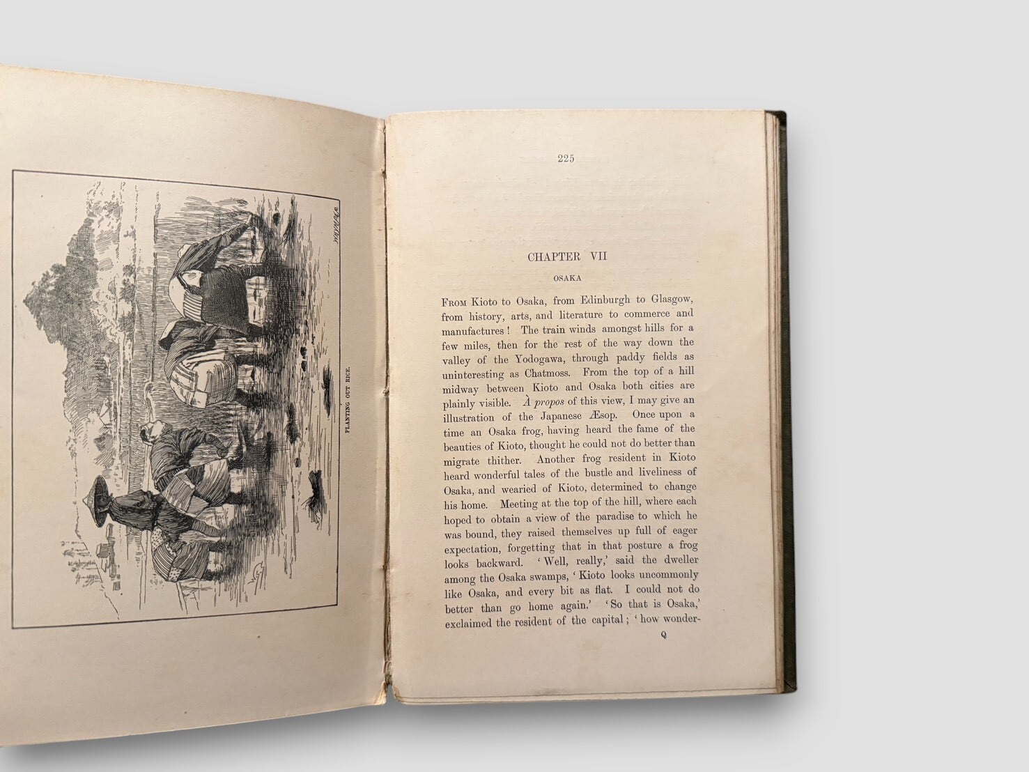 19世紀末に日本を訪れた英国国教会の聖職者・博物学者 H. B. Tristram による旅行記。明治期日本の風景、宗教、風俗、そして社会のあり方を、西洋人の宗教的・博物学的関心に基づく視点から記録。著者は短期滞在者としての立場を自覚しつつ、日本各地を巡り、自然環境や人々の生活、宗教的慣習について丹念な観察を行っている。本書には、著名な登山家・画家 Edward Whymper による挿絵を含む45点の図版が本文中に収録されており、文章だけでなく視覚資料の面からも当時の日本像を伝えている。明治期日本をめぐる西洋のまなざしを知るための史料として、また旅行文学・日本研究史の文脈においても重要な一冊である。