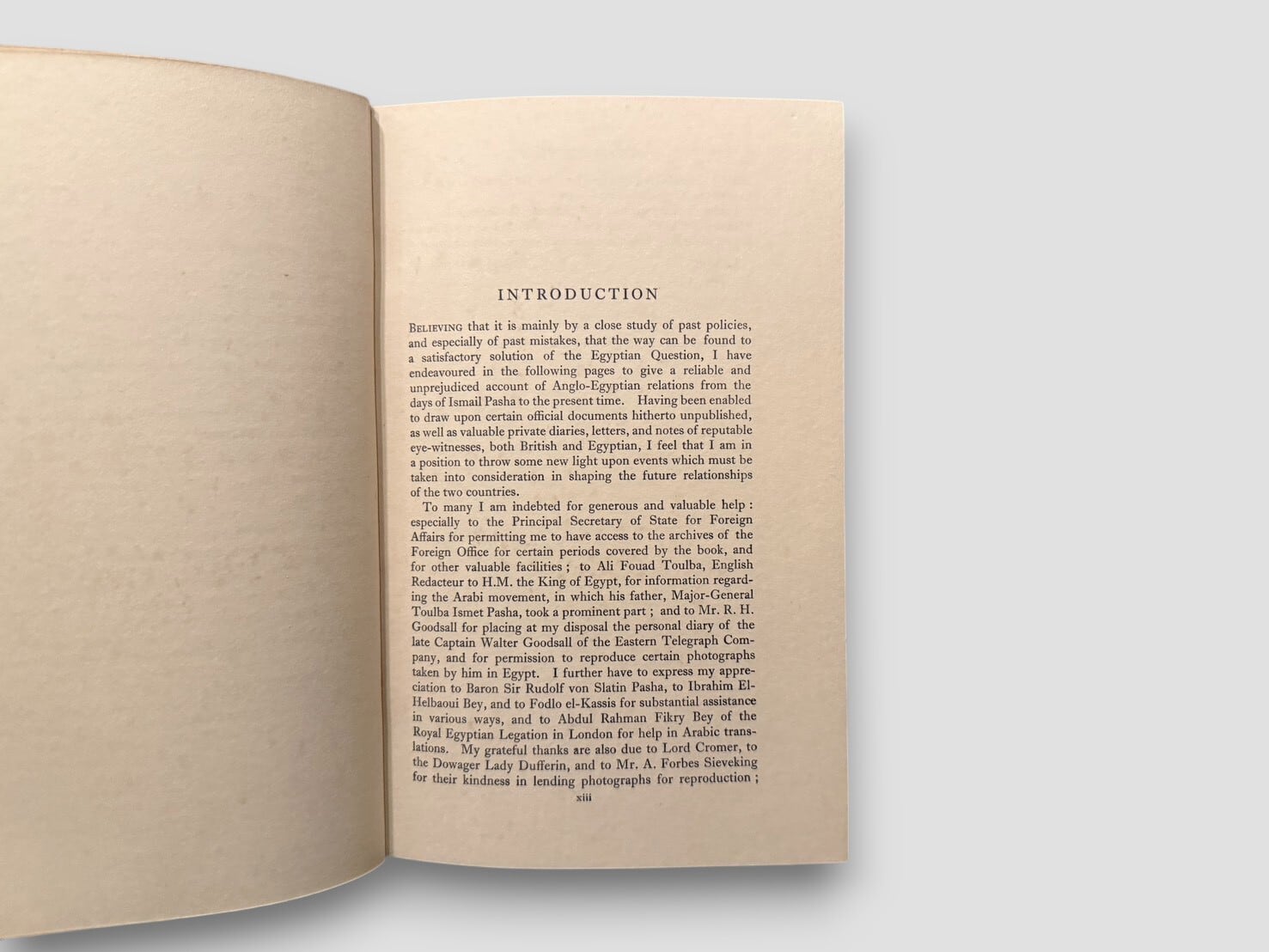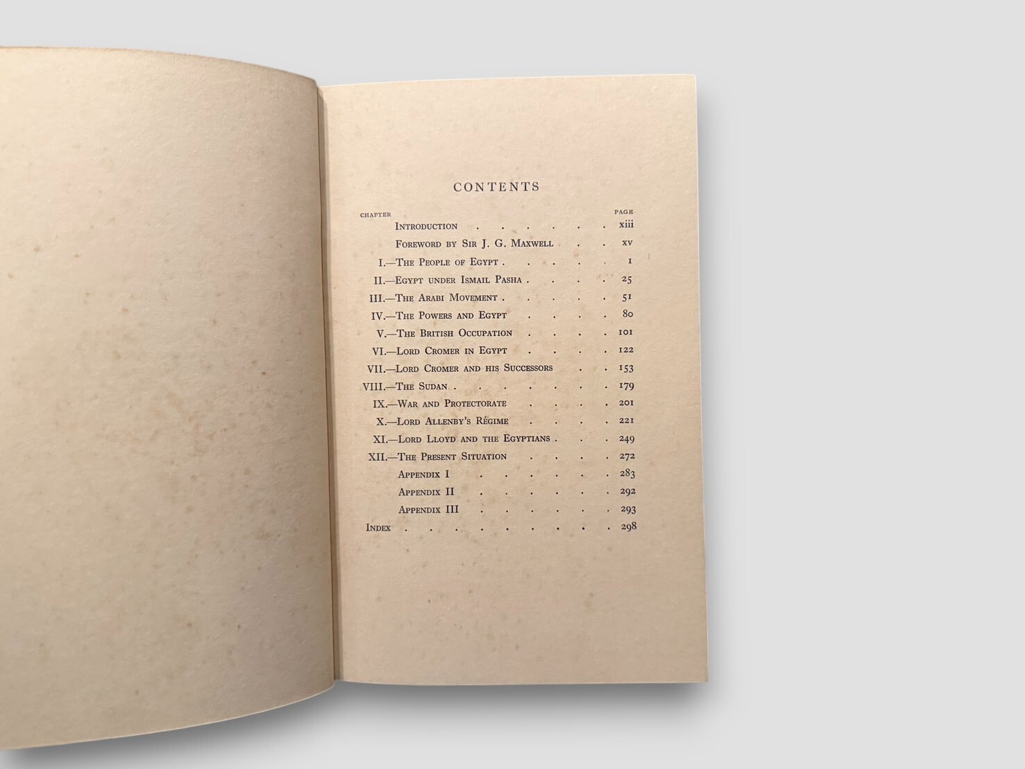 イギリス軍人であり歴史家でもあった E. W. Polson Newman による、19世紀後半から20世紀初頭にかけての英埃関係を扱った政治史研究書。イギリスによるエジプト統治の経緯とその影響を、当事者に近い視点から整理・分析した一冊として位置づけられる。単なる回想や論説ではなく、外交・軍事・行政の各側面から「エジプト問題」を包括的に捉えようとする姿勢が本書の特徴。写真図版16点および地図2点が収録され、当時の状況を視覚的にも補っている。20世紀初頭のイギリス帝国史、植民地統治史、近代中東史を考える上で、現在でも参照価値の高い資料的著作である。