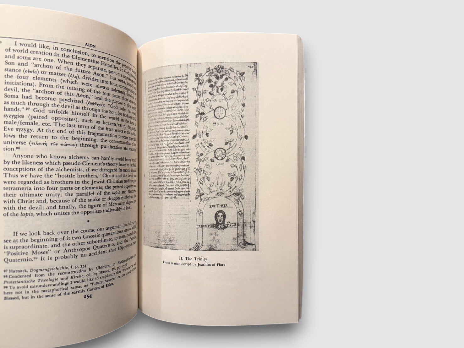 ユングの後期思想を代表する重要著作『アイオーン』は、「自己(Self)」という概念を、人類の宗教史と象徴体系のなかで徹底的に掘り下げた一冊。書名の Aion(アイオーン)はギリシア語で「永劫」「時代」を意味し、集合的無意識における時代的変容を読み解くための鍵概念として用いられている。本書では、キリスト像を「自己の象徴」として分析し、魚の象徴、キリストとアンチキリストという対立原理、占星術的時代観などが精緻に論じられる。心理学の枠を超え、キリスト教神秘思想、グノーシス主義、錬金術、象徴史へと射程を広げる点において、『Aion』はユング思想の到達点のひとつとされている。分析心理学、宗教思想、象徴論に関心のある読者にとって、長く参照され続けてきた基礎文献である。