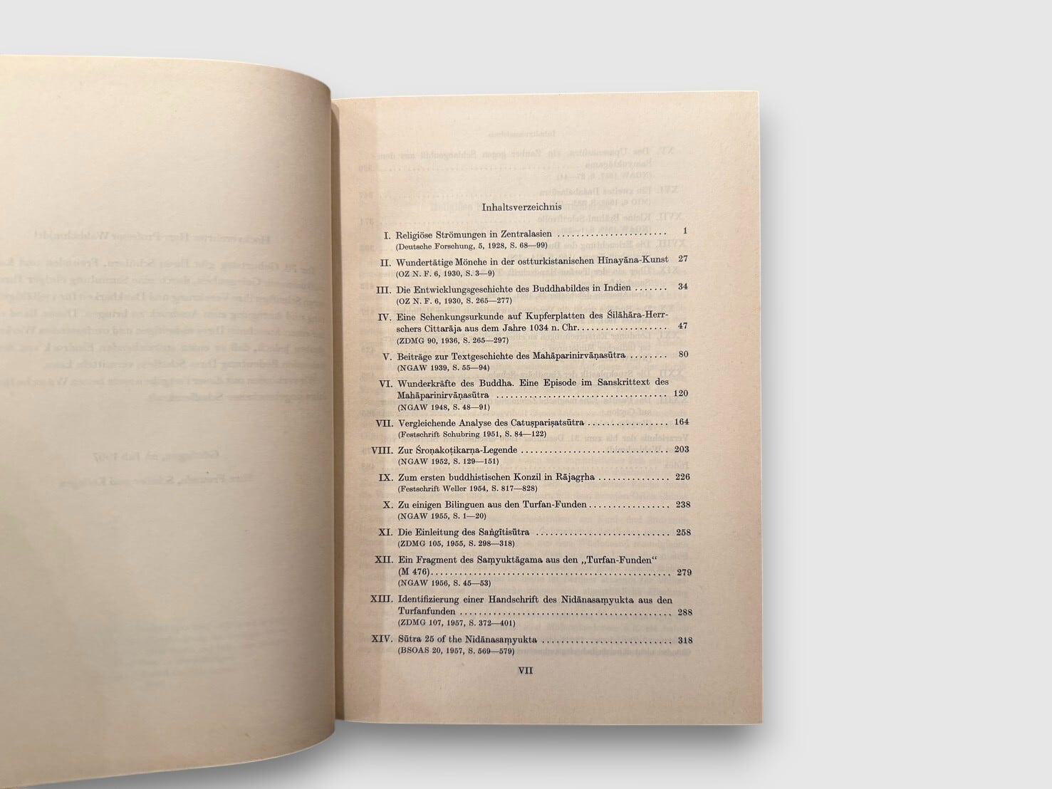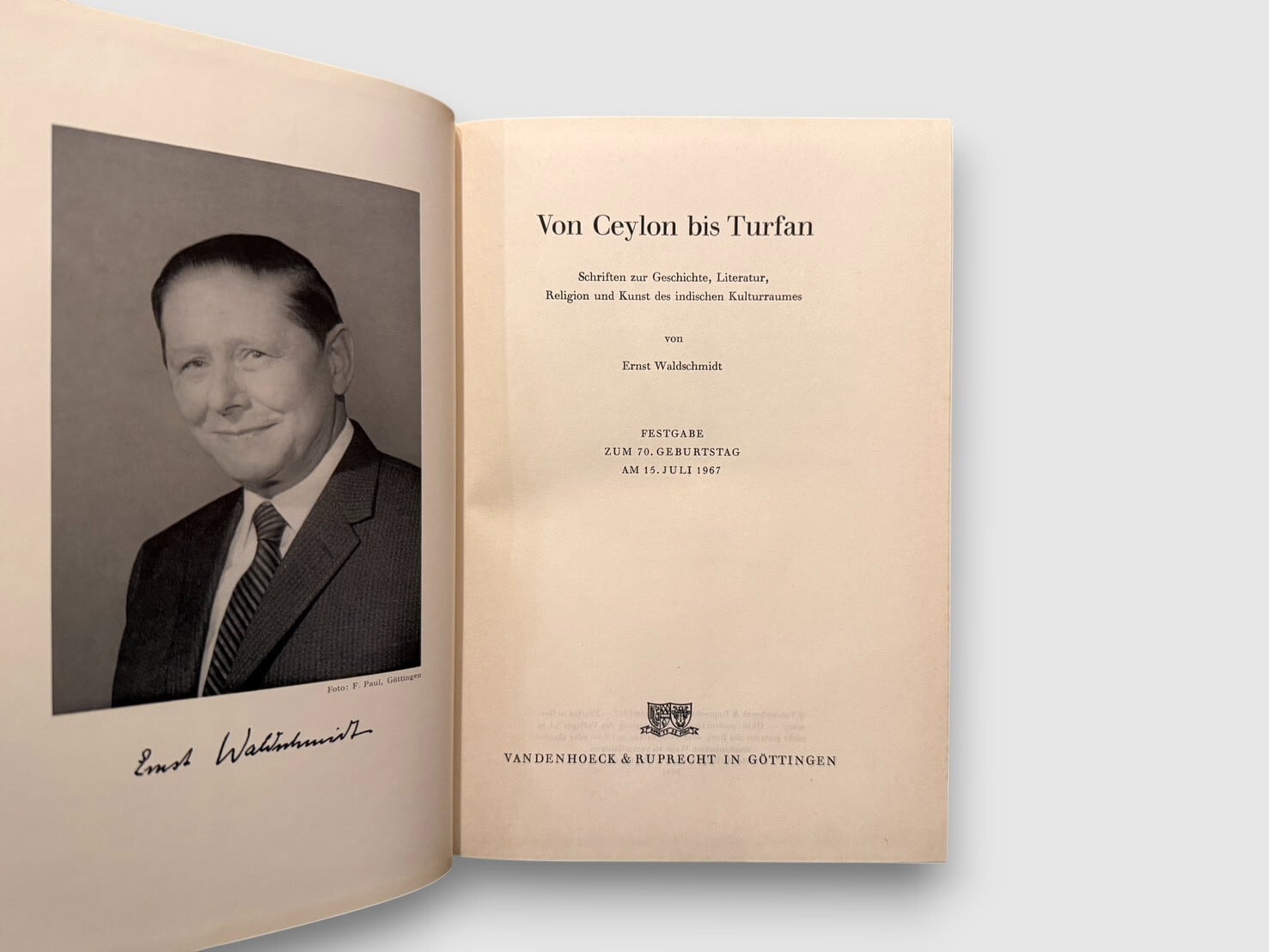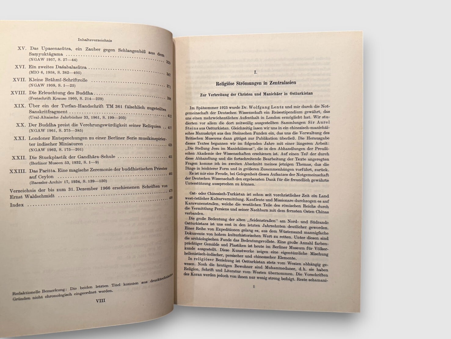 20世紀ドイツ仏教学・インド学を代表する研究者エルンスト・ヴァルトシュミットの業績を記念して編まれた論文集。スリランカ(セイロン)から中央アジア・トゥルファンに至る広範なインド文化圏を対象とする研究成果を収録する。本書は1967年、著者70歳を記念するフェストシュリフト(Festgabe)として刊行されたものであり、既発表論文を中心に構成されている。