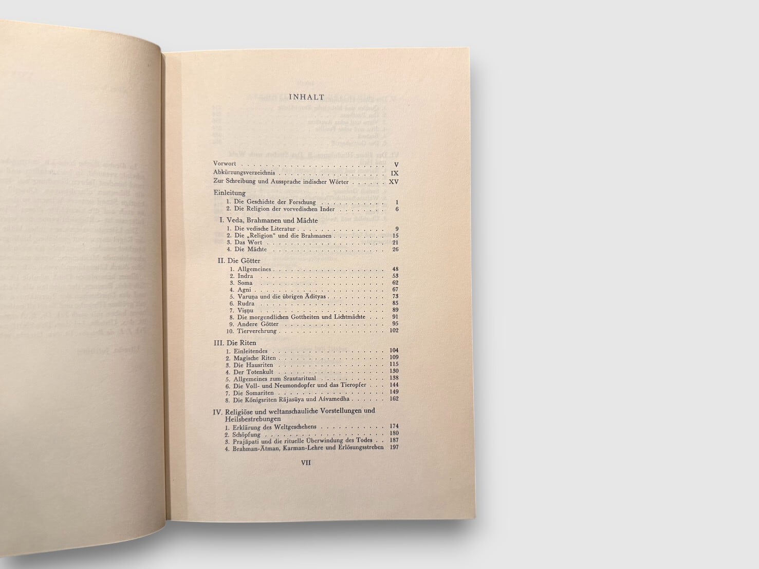 20世紀を代表するインド学者ヤン・ゴンダによる、ヴェーダ宗教および古代ヒンドゥー教に関する体系的研究書。叢書『Die Religionen der Menschheit(人類の諸宗教)』第11巻として刊行され、ヴェーダ文献、祭式、神々の性格、宗教的概念、世界観の形成過程を、文献学的・歴史的観点から詳細に検討している。ゴンダの広範な原典読解にもとづく本書は、ヴェーダ宗教から古代ヒンドゥー教への連続性と変容を理解するための古典的研究書の一つとして位置づけられている。