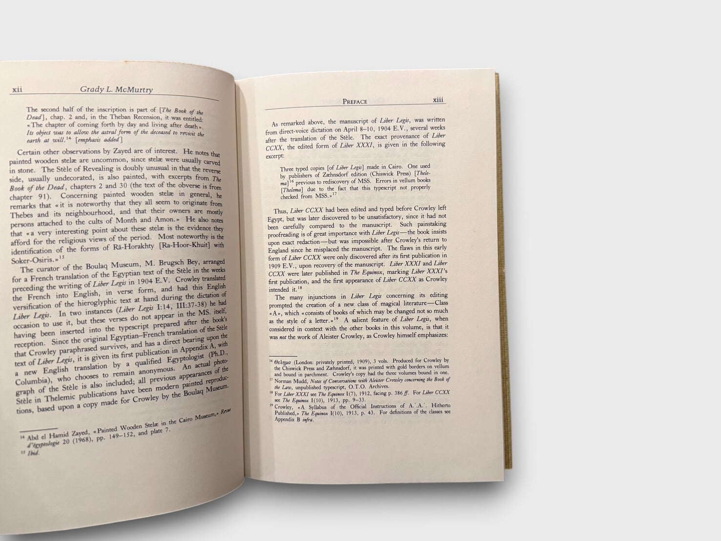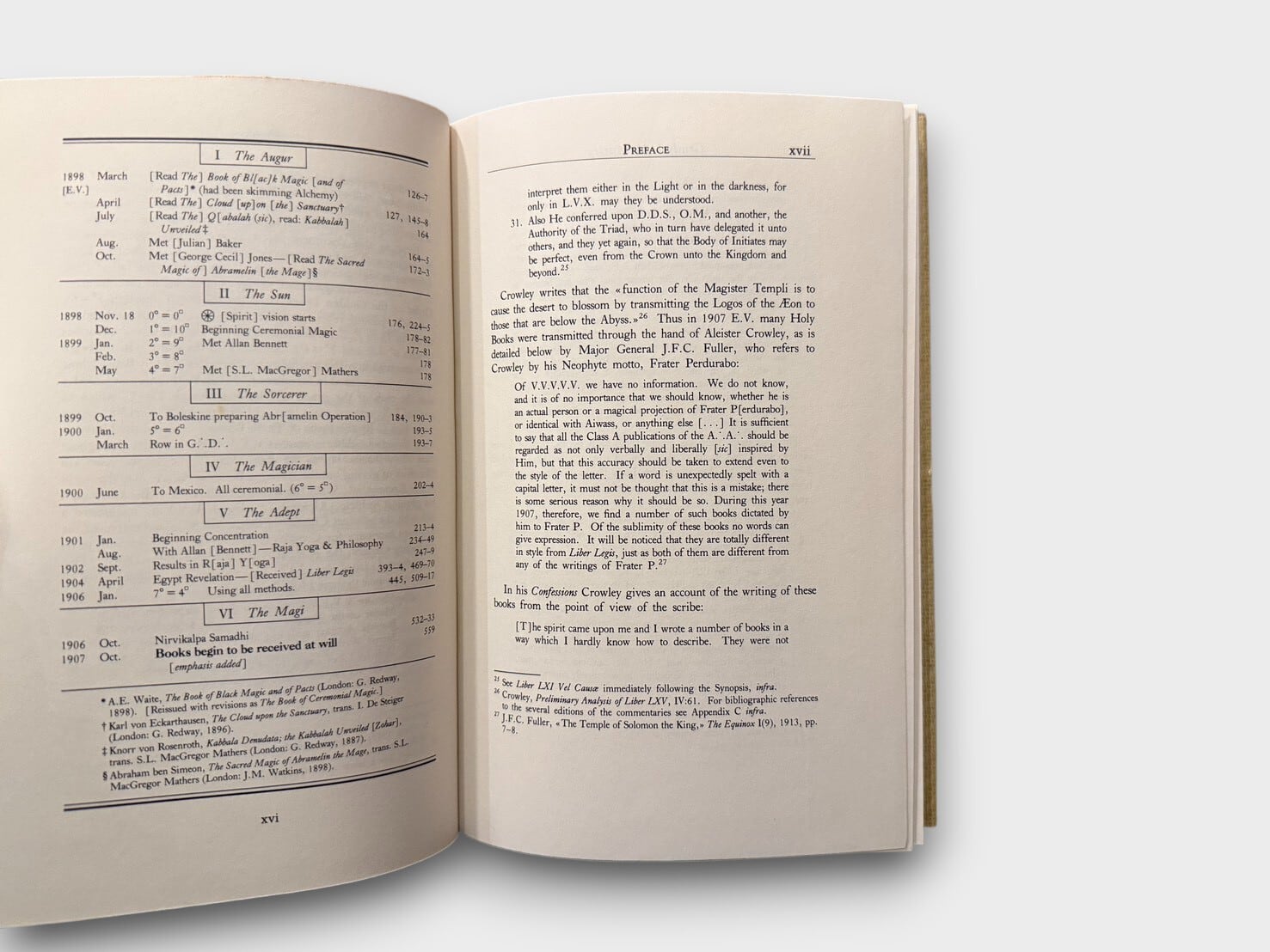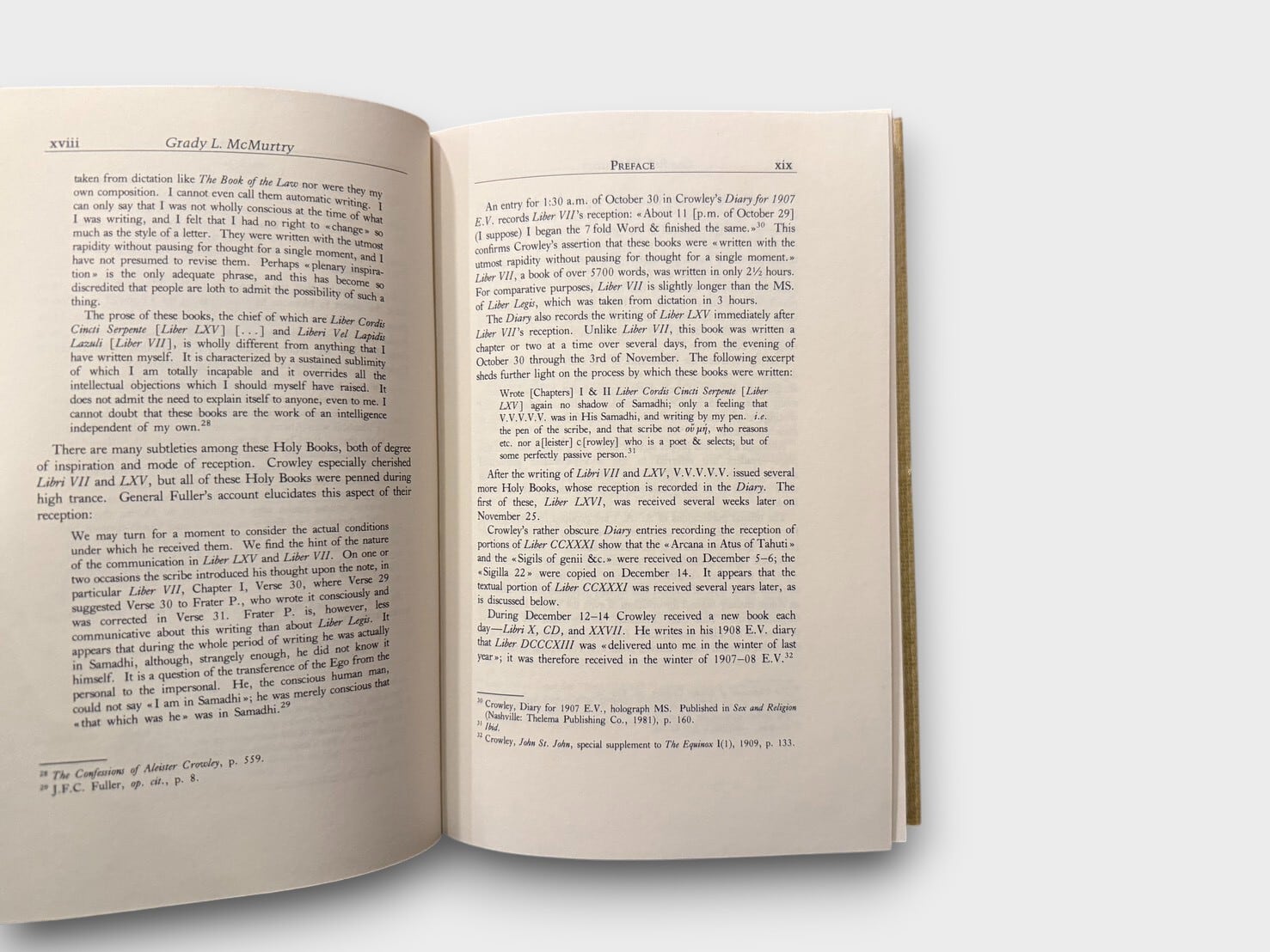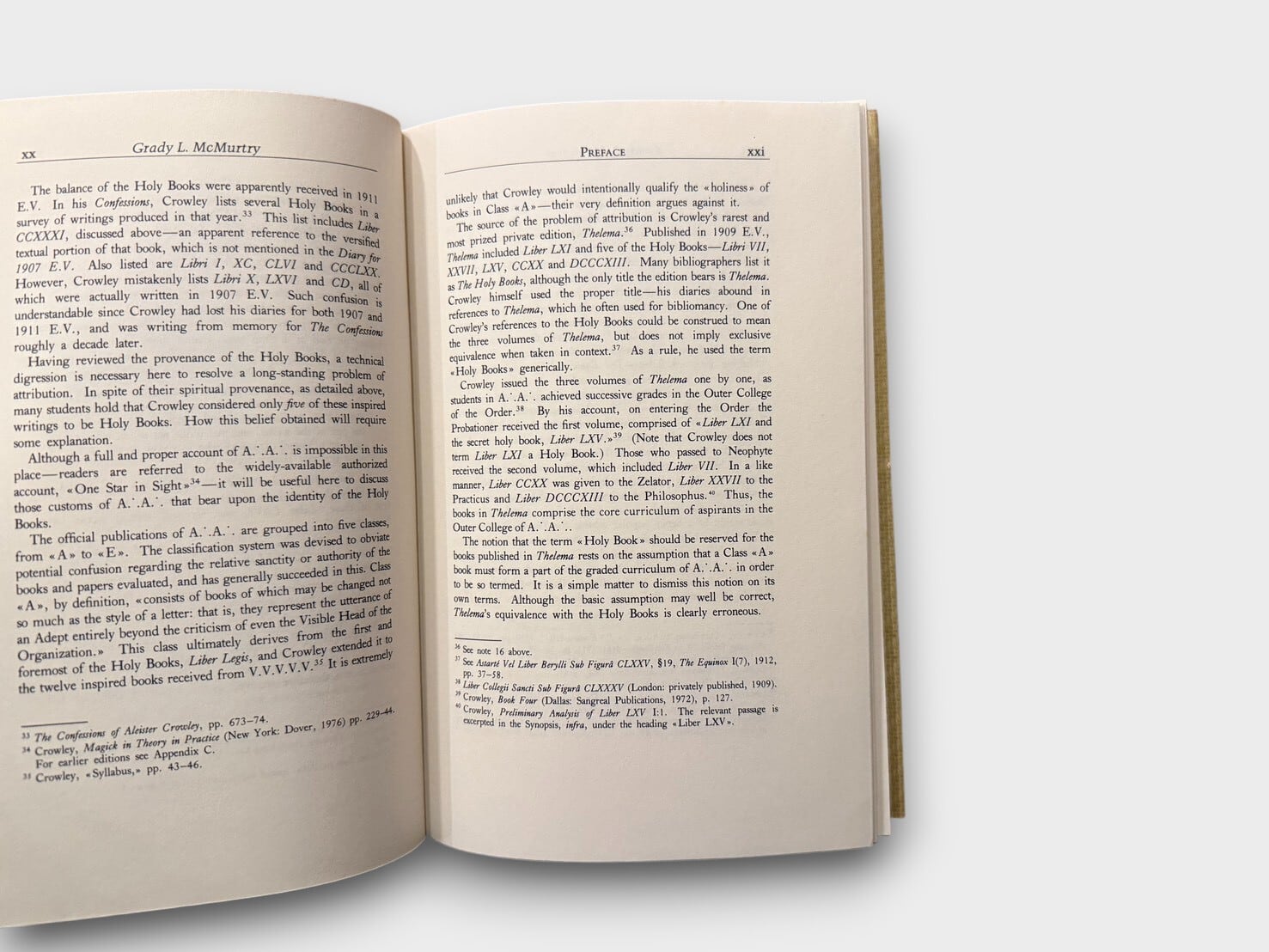 20世紀オカルティズムを決定づけた思想家・詩人、アレイスター・クロウリー(1875–1947)が「霊感によって受け取った」とされるテレマの聖典群、いわゆる Holy Books of Thelema を、初めて広く流通する形で一冊にまとめた編集版。単なる神秘文献の集成にとどまらず、20世紀オカルティズムにおける「啓示」「作者性」「編集」という問題を考える上で、重要な参照点の一つとされてきた書物である。1983年に刊行されたSamuel Weiser版初版。